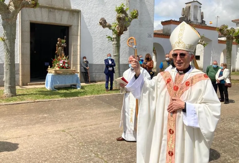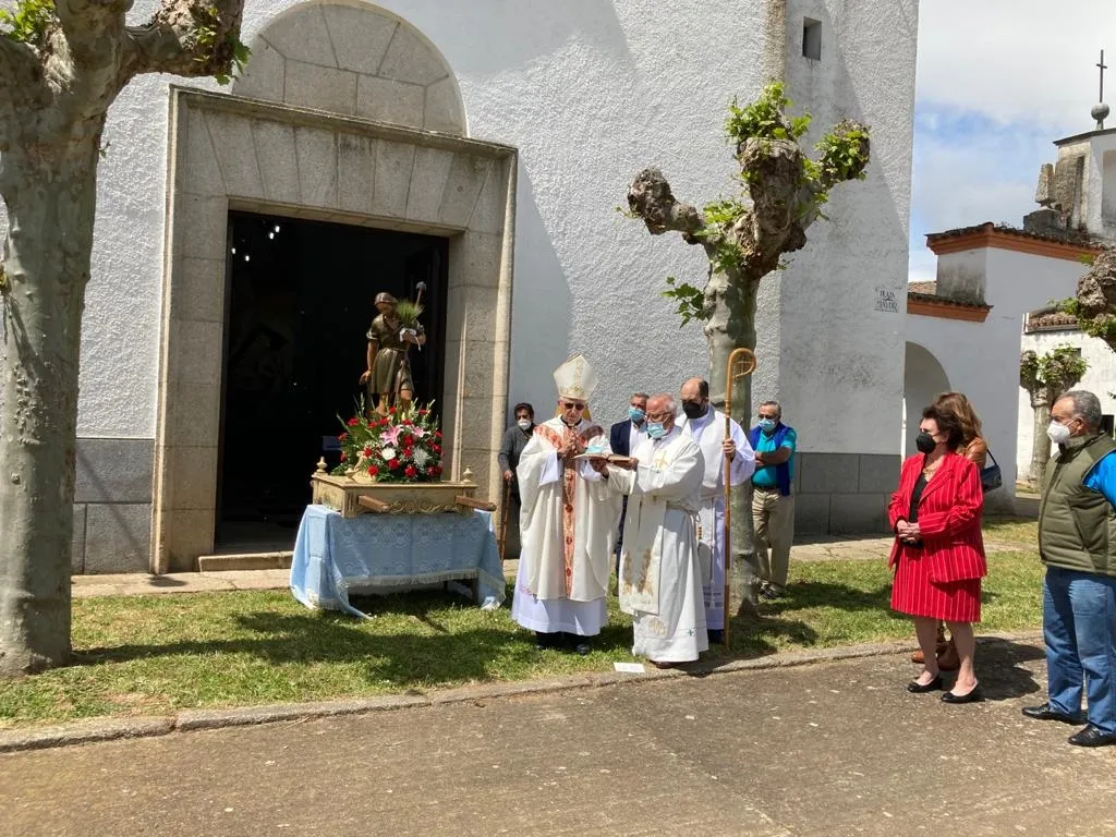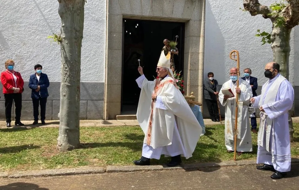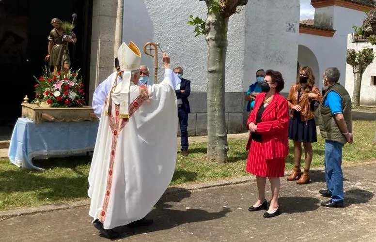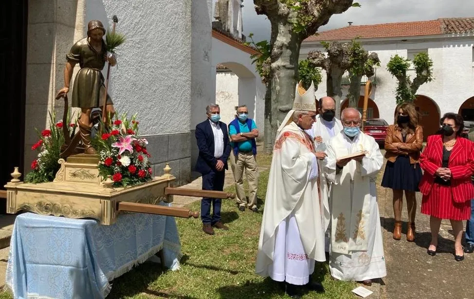 Para empezar, dentro del templo hubo una solemne eucaristía, presidida por el Administrador Apostólico de la Diócesis de Ciudad Rodrigo, Jesús García Burillo, con la compañía de los sacerdotes Joaquín Galán y Víctor Sevillano. Concluida la celebración, salieron al exterior para llevar a cabo la tradicional bendición de campos, acercándose Jesús García Burillo a la zona verde que está delante de la Iglesia. Para rematar, se procedió a cumplir otra tradición: la subasta de la rosca entre todos los congregados.