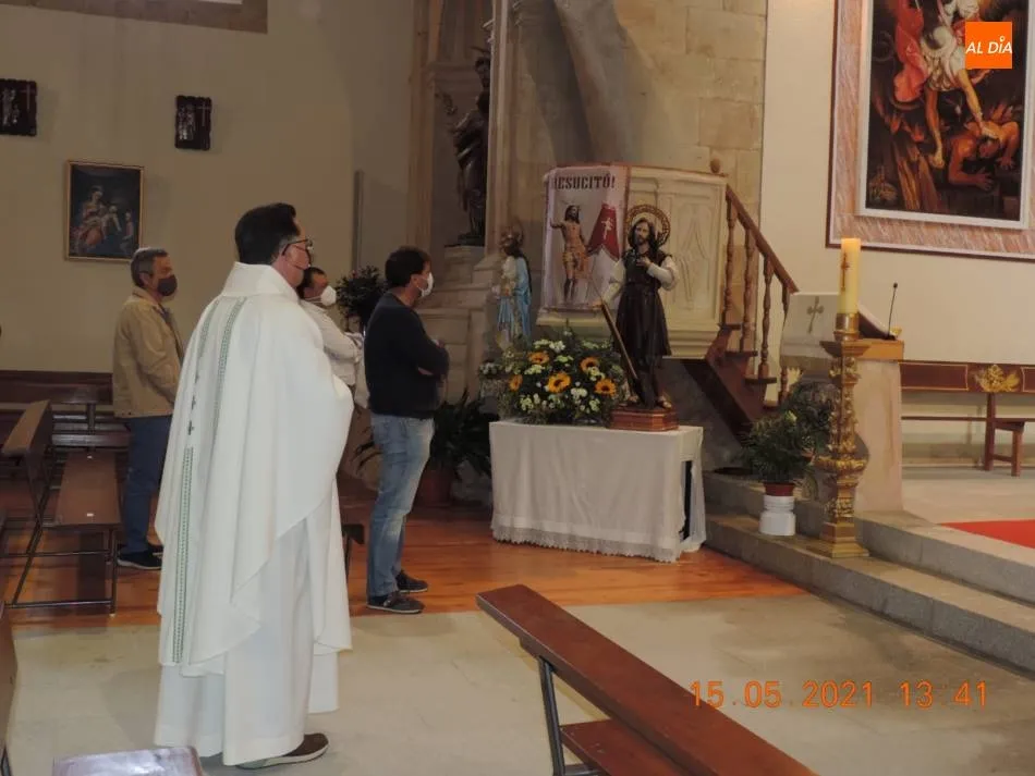 Los profesionales del campo de Aldearrubia han podido asistir a una misa en honor a San Isidro Labrador. Los agricultores y ganaderos han participado hoy en una eucaristía oficiada por el párroco Juan Pedro Melgar, este año, con las medidas que impone la pandemia del coronavirus.