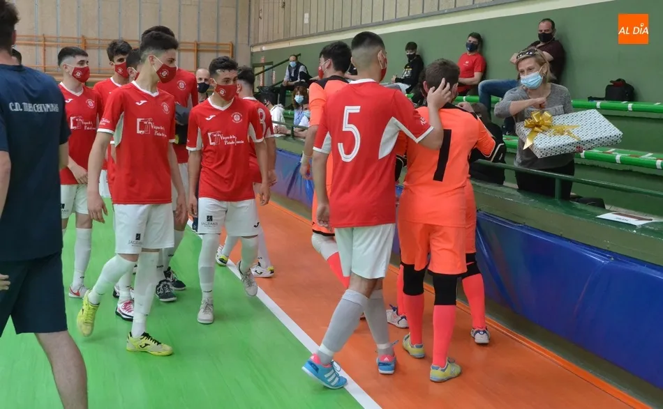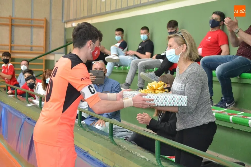 Concluido el encuentro, se les hizo entrega de unas camisetas de despedida, así como a David Cepa, integrante de la misma generación que este año ha ejercido como utillero del equipo. Mientras tanto, los propios jugadores entregaron unos obsequios a los que han sido sus responsables, Simón Moreiro como entrenador, Reme Barco como delegada, y David Cepa, sucediéndose a continuación las clásicas fotos de fin de etapa antes de irse a celebrar la brillante temporada que han firmado.