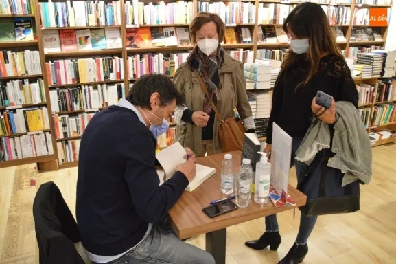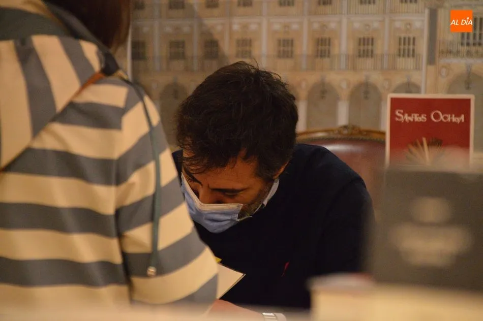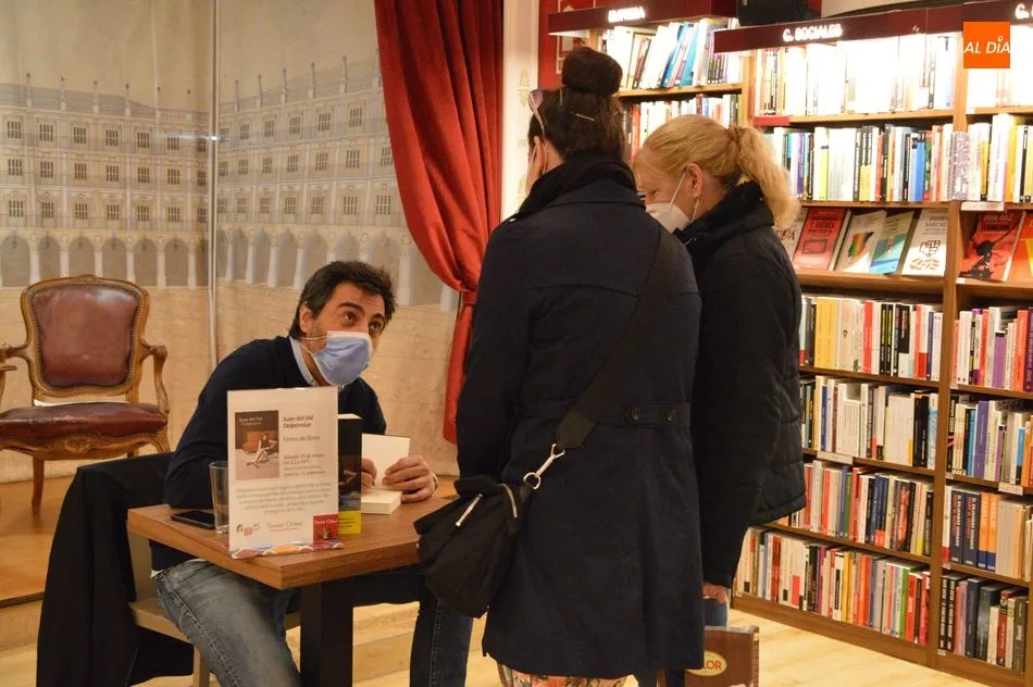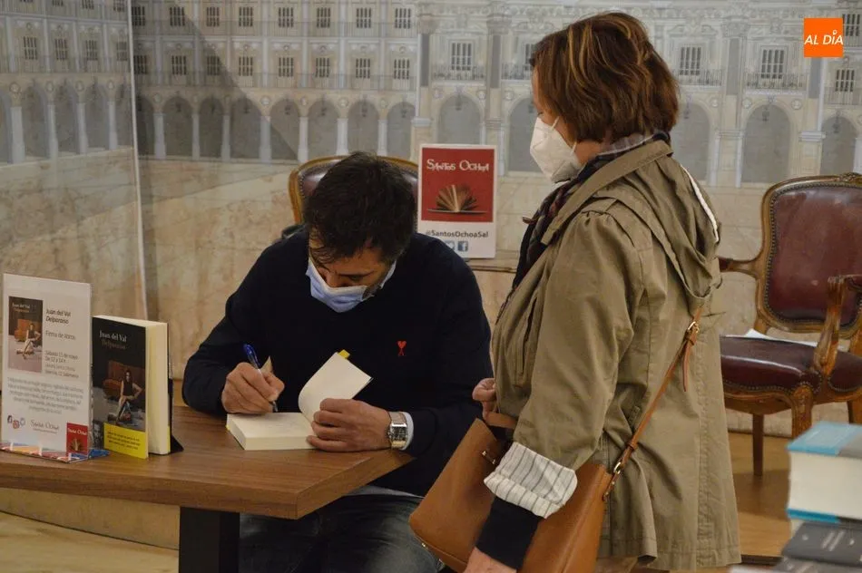 El escritor Juan del Val ha protagonizado esta mañana una firma de ejemplares de su última novela, ?Delparaíso?, editada por Espasa, en la Librería Santos Ochoa. Numersosos aficionados se han acercado para conocer al autor, que debido a su número hasta hicieron cola a la entrada del establecimiento para mantener la distancia de seguridad.