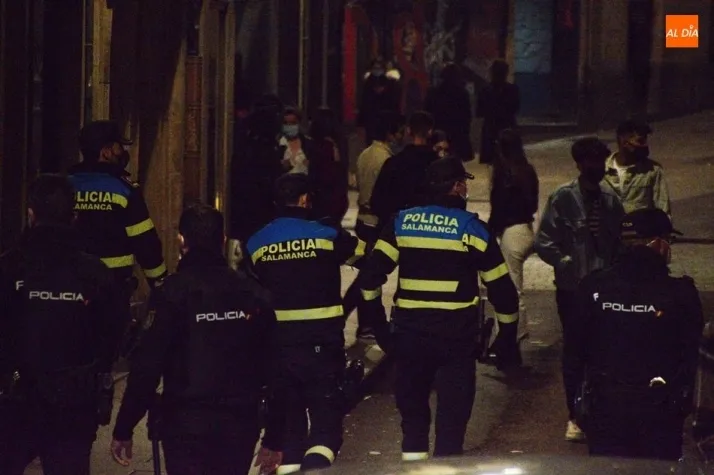 Tras una noche de récord el viernes, la Policía Local continuó anoche con su despliegue especial en la noche salmantina, con especial atención a los botellones. Si bien se redujo notablemente el número de denuncias, la cantidad sigue superando los dos centenares, lo que sigue estando por encima de la media de las noches durante el estado de alarma.