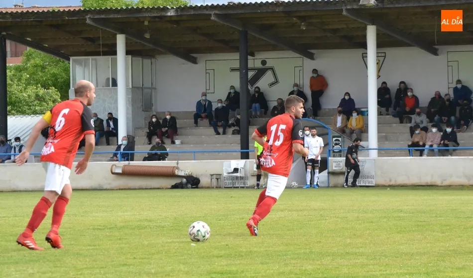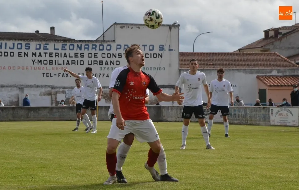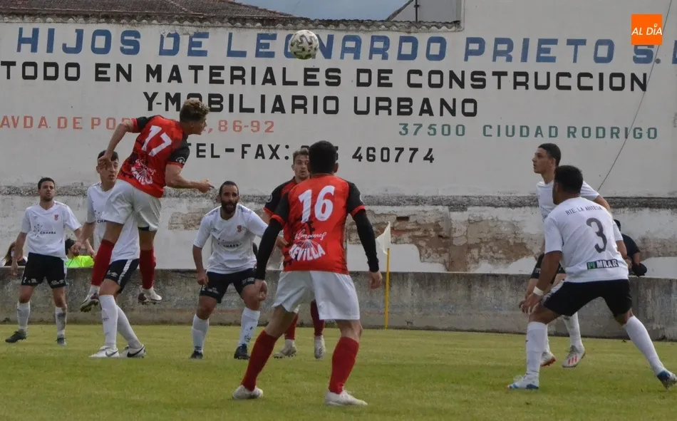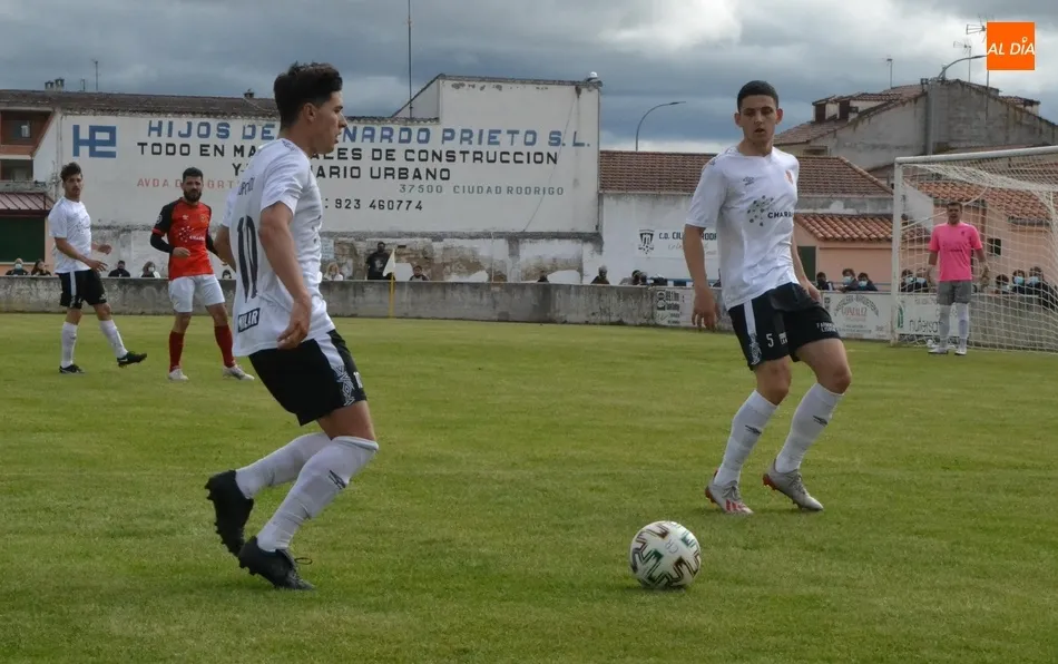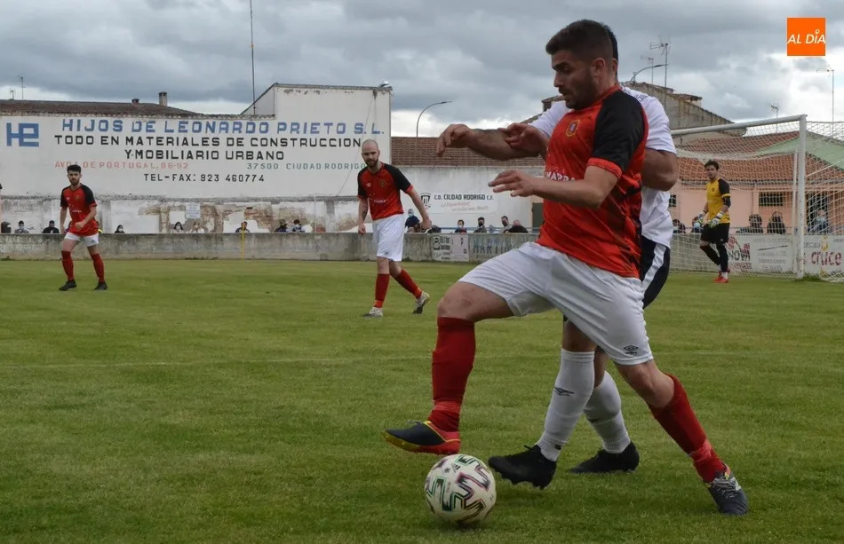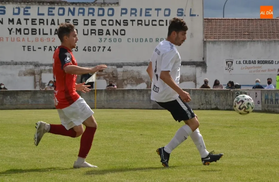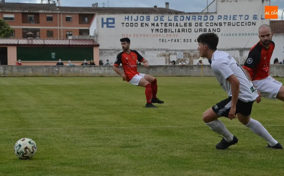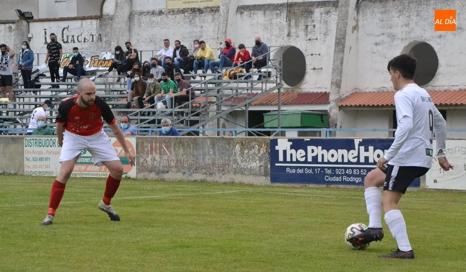 El partido estuvo igualado un pequeño tramo, pero el Ciudad Rodrigo sin prisa pero sin pausa continuó merodeando el área rival, intentándolo con remates que se marcharon fuera de Alberto Martín y Maza. Mucho más peligro hubo con un saque de córner en el 35? de Alberto García desde la derecha, que fue rematado de cabeza por Javi Moríñigo, tocando el balón el portero y el palo para marcharse de nuevo a córner.
