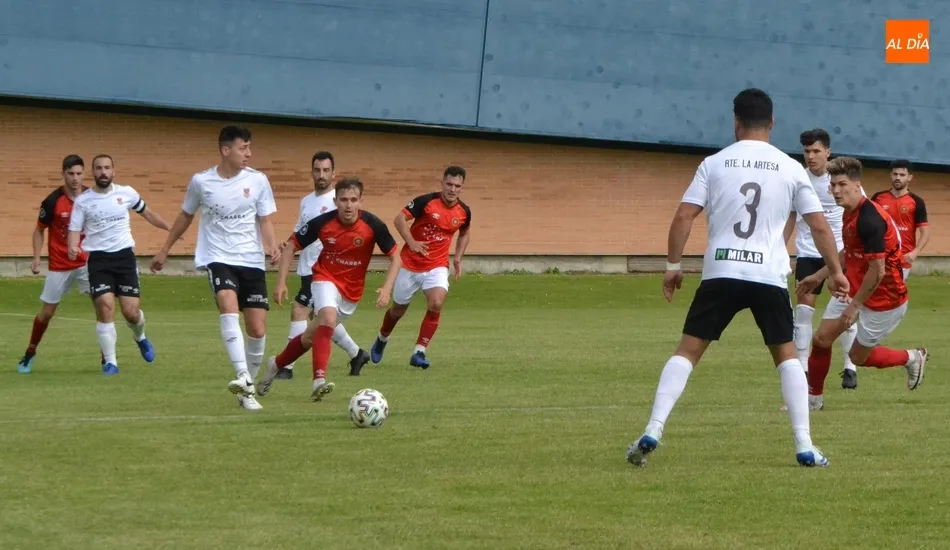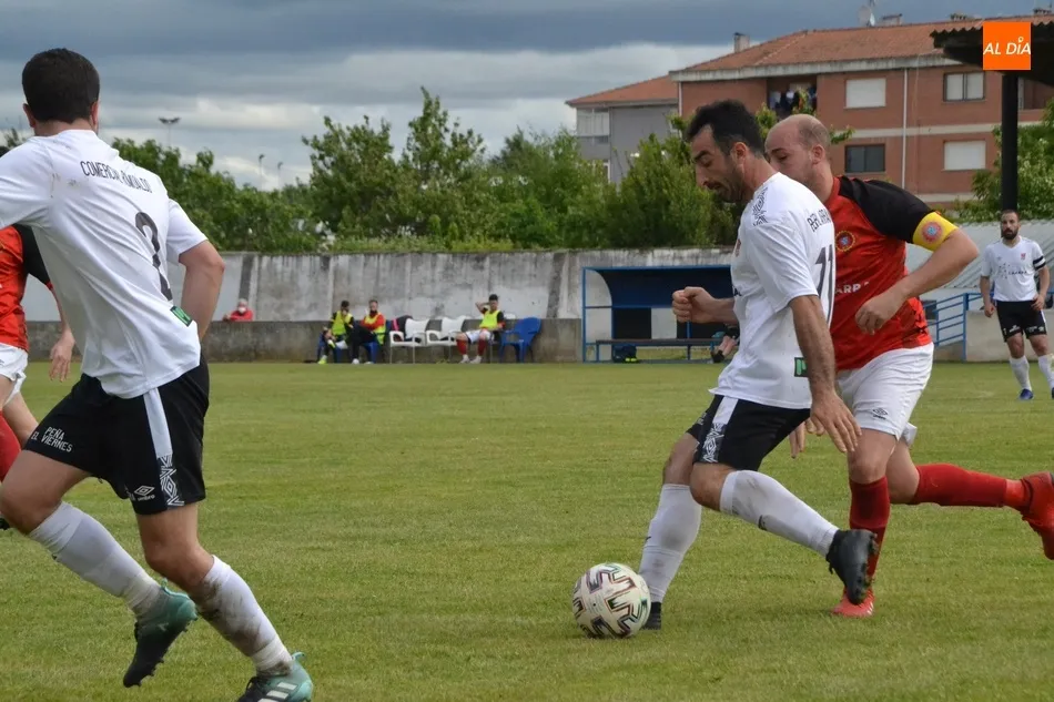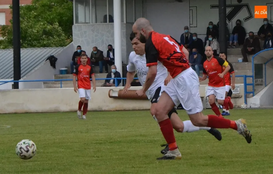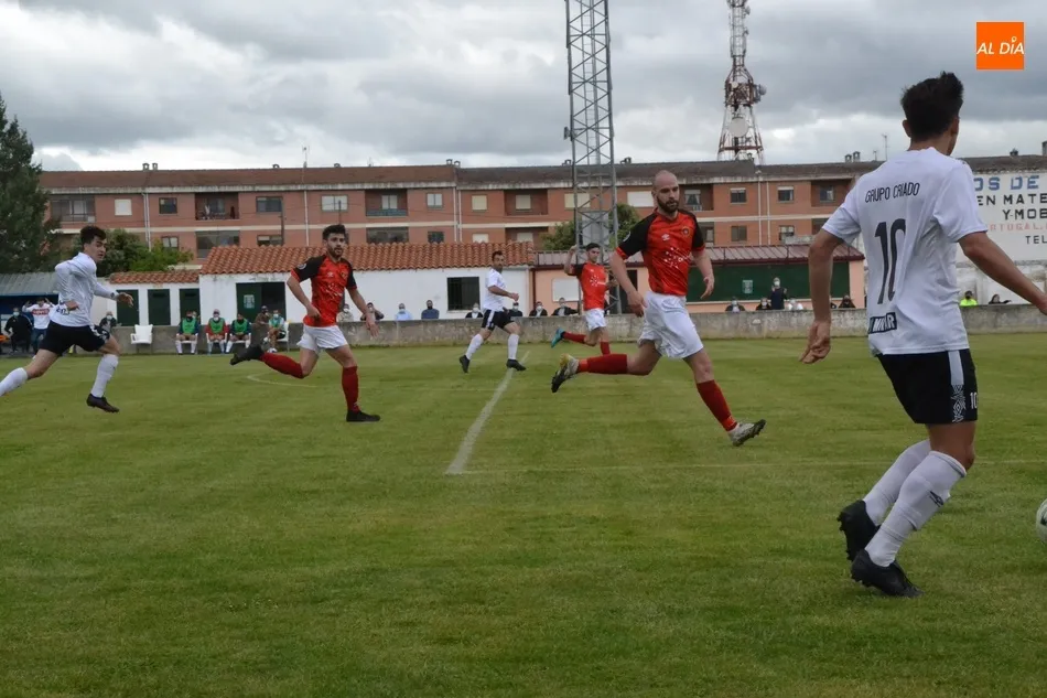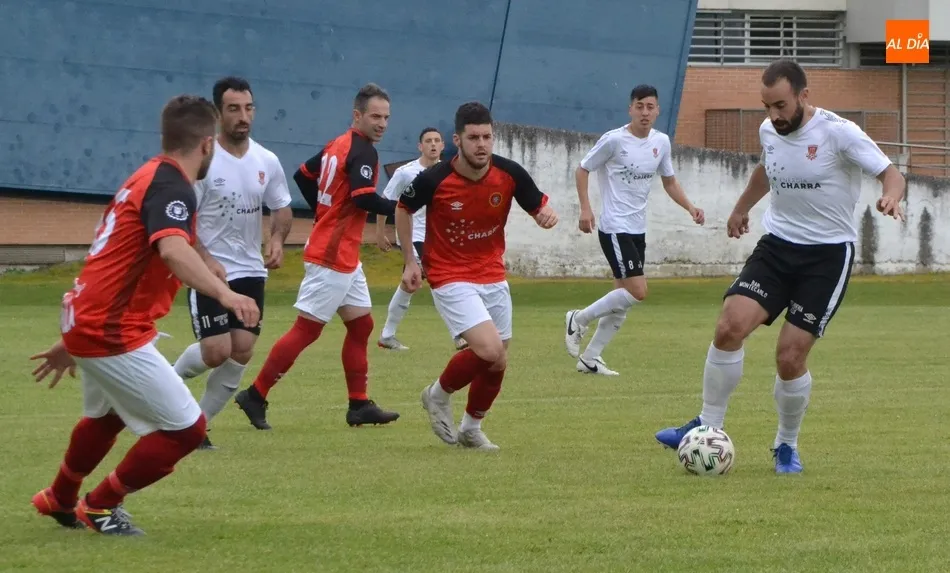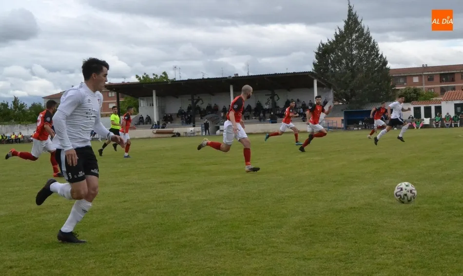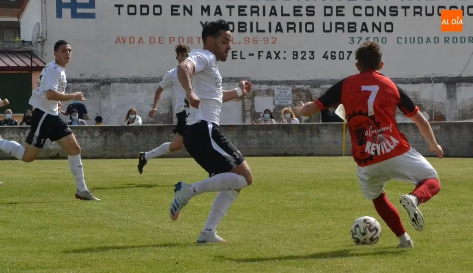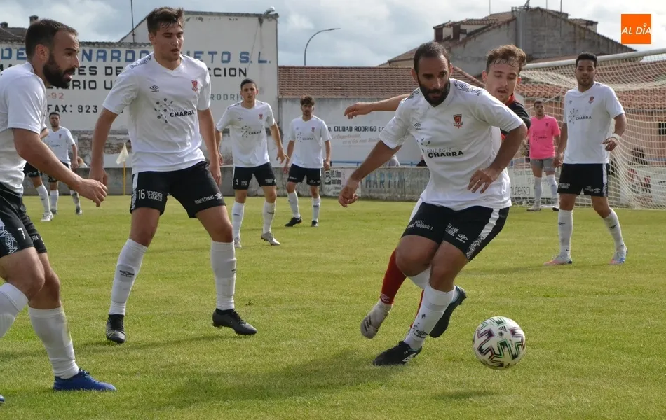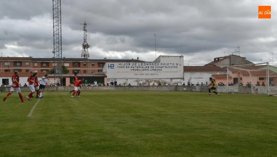 El partido estuvo igualado un pequeño tramo, pero el Ciudad Rodrigo sin prisa pero sin pausa continuó merodeando el área rival, intentándolo con remates que se marcharon fuera de Alberto Martín y Maza. Mucho más peligro hubo con un saque de córner en el 35? de Alberto García desde la derecha, que fue rematado de cabeza por Javi Moríñigo, tocando el balón el portero y el palo para marcharse de nuevo a córner.