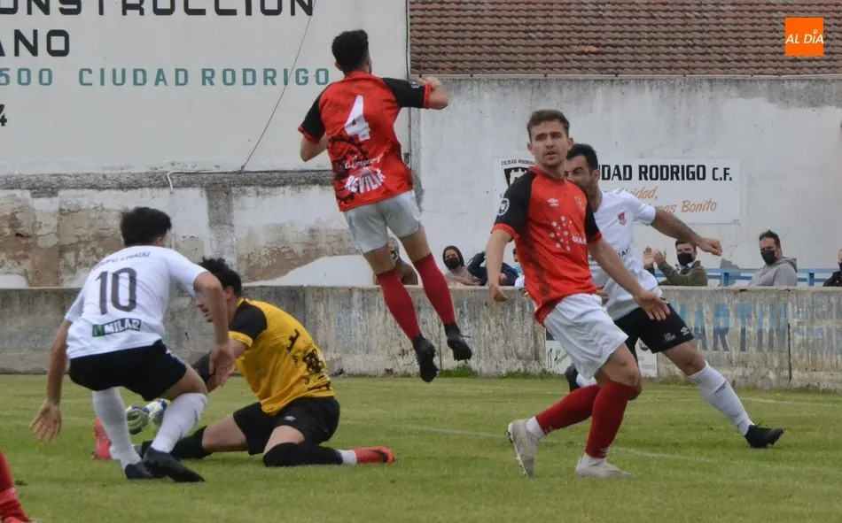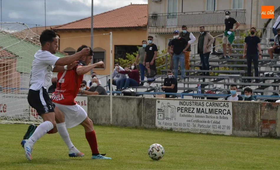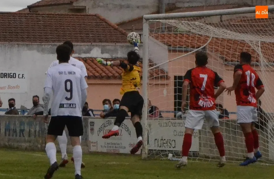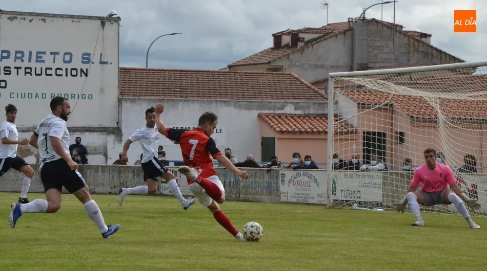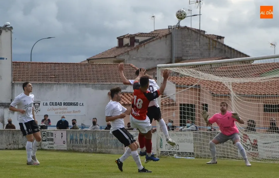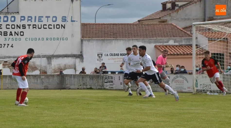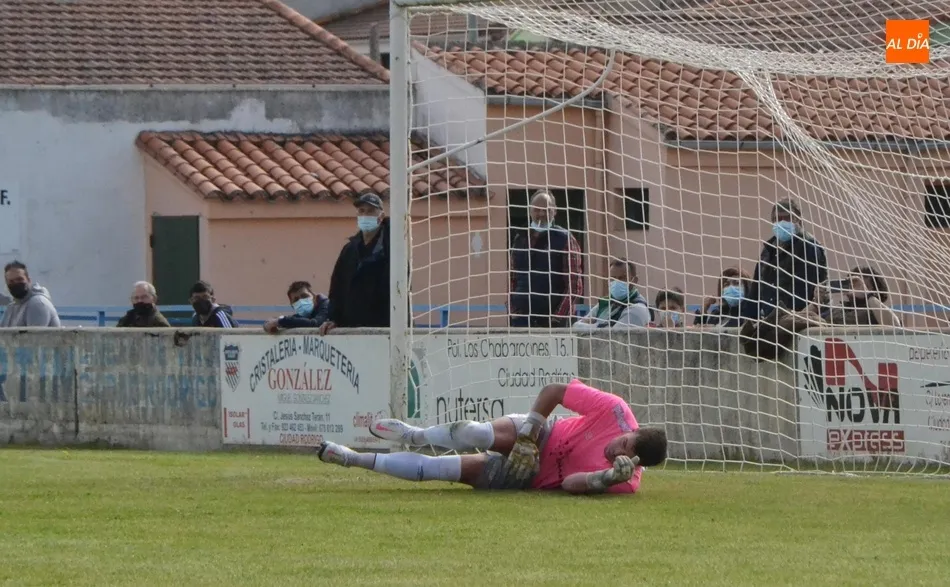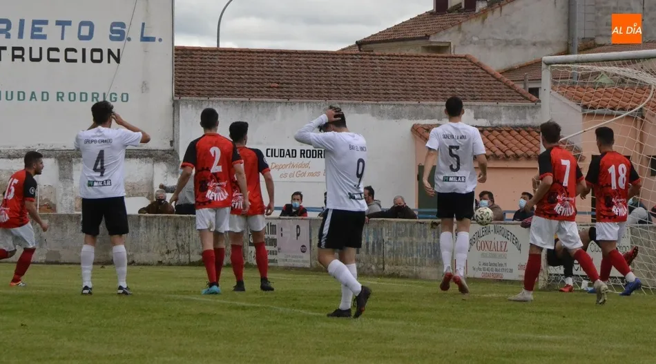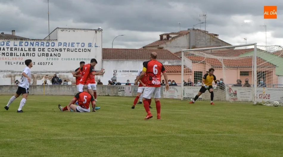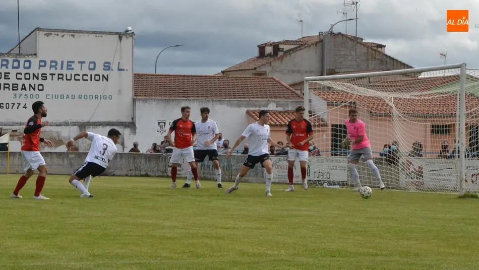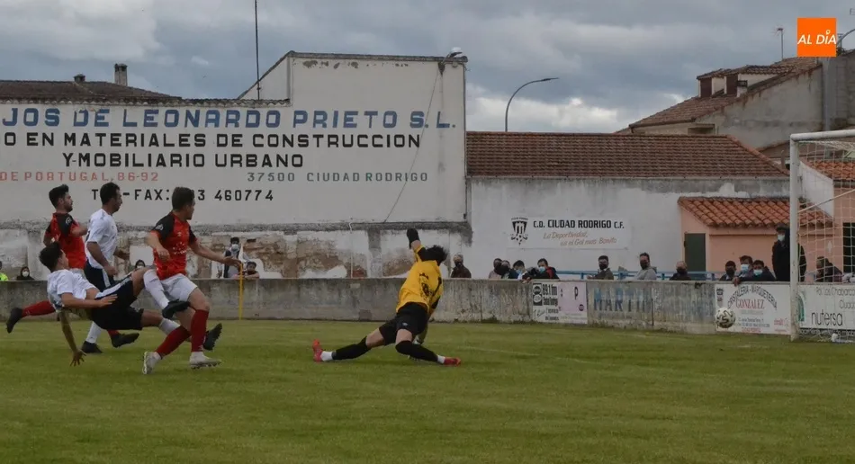 Aún más claro fue en el 77? un saque de falta de estrategia desde 3/4 de campo, donde mandaron el balón raso al área, donde un jugador lo tenía todo a placer para marcar, pero le dio fatal y el balón tampoco fue a puerta. Y ya en el 88? remataron también fuera un pase de la muerte desde la derecha de nuevo muy peligroso. Un par de minutos antes el Ciudad Rodrigo había podido sentenciar, con un balón que le metió Javi Moríñigo a la derecha del área a Pablo López, quién lo envió al área pequeña donde Fran Gemio hizo un remate de primeras a bocajarro, teniendo el portero la ?suerte? de estar en el sitio oportuno para despejarlo con el cuerpo.