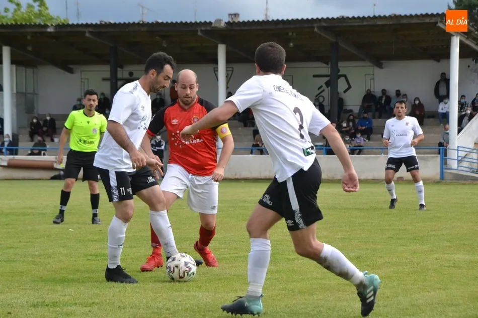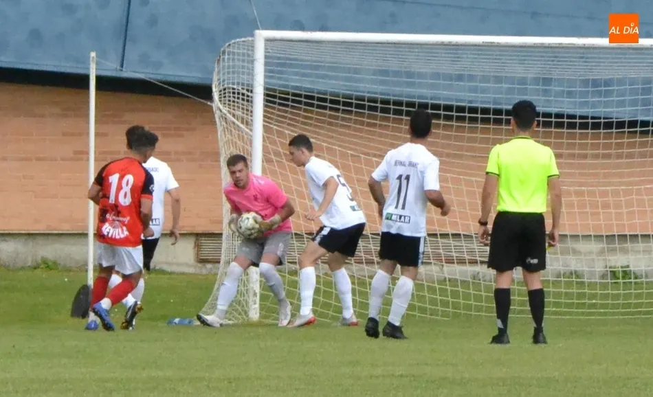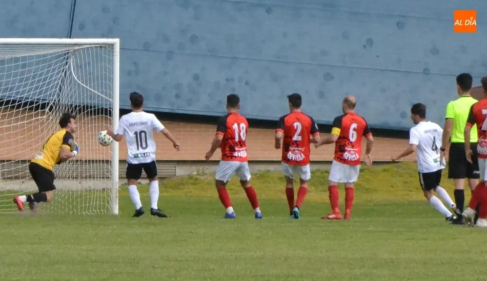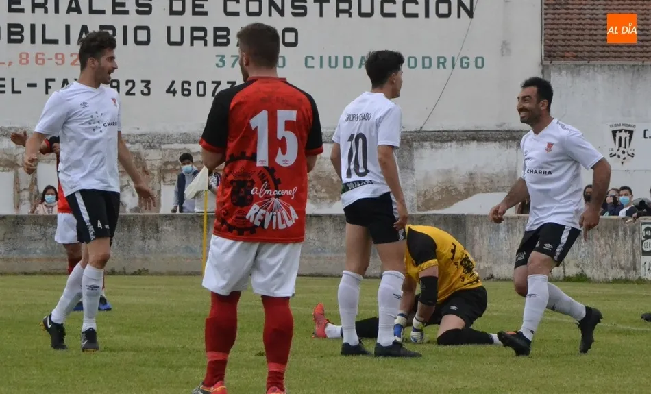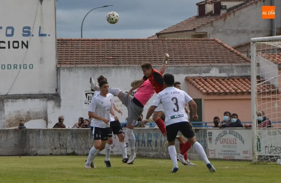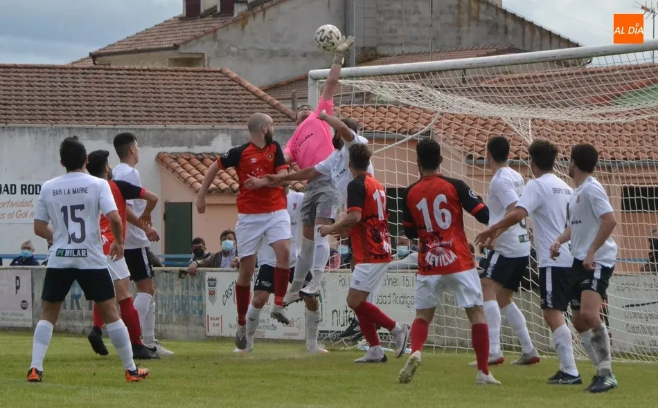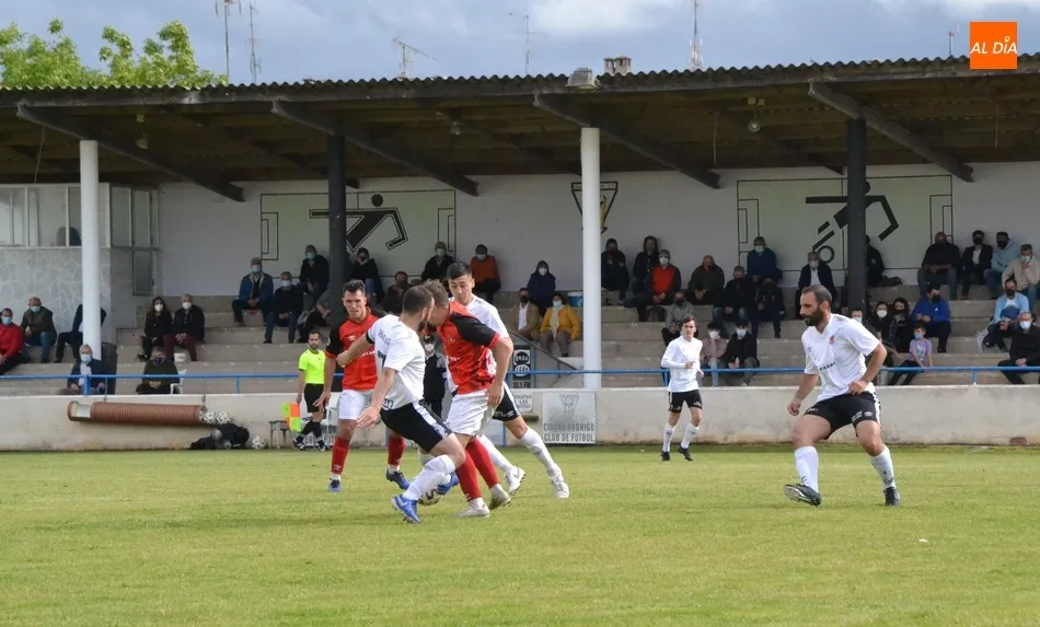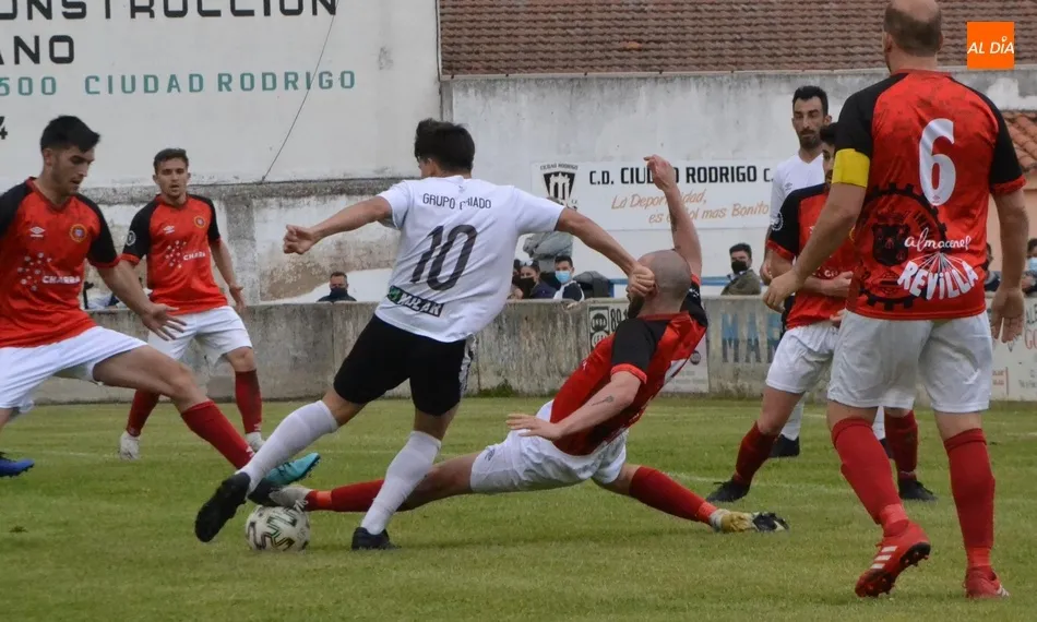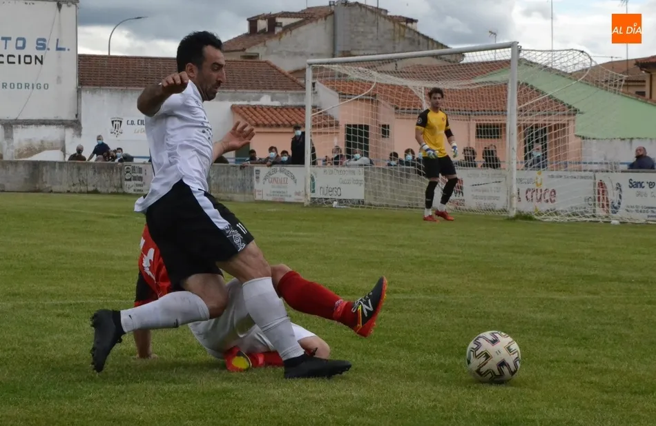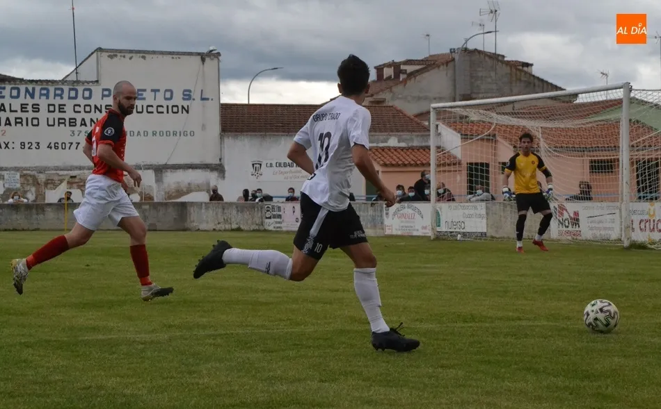 Aún más claro fue en el 77? un saque de falta de estrategia desde 3/4 de campo, donde mandaron el balón raso al área, donde un jugador lo tenía todo a placer para marcar, pero le dio fatal y el balón tampoco fue a puerta. Y ya en el 88? remataron también fuera un pase de la muerte desde la derecha de nuevo muy peligroso. Un par de minutos antes el Ciudad Rodrigo había podido sentenciar, con un balón que le metió Javi Moríñigo a la derecha del área a Pablo López, quién lo envió al área pequeña donde Fran Gemio hizo un remate de primeras a bocajarro, teniendo el portero la ?suerte? de estar en el sitio oportuno para despejarlo con el cuerpo.