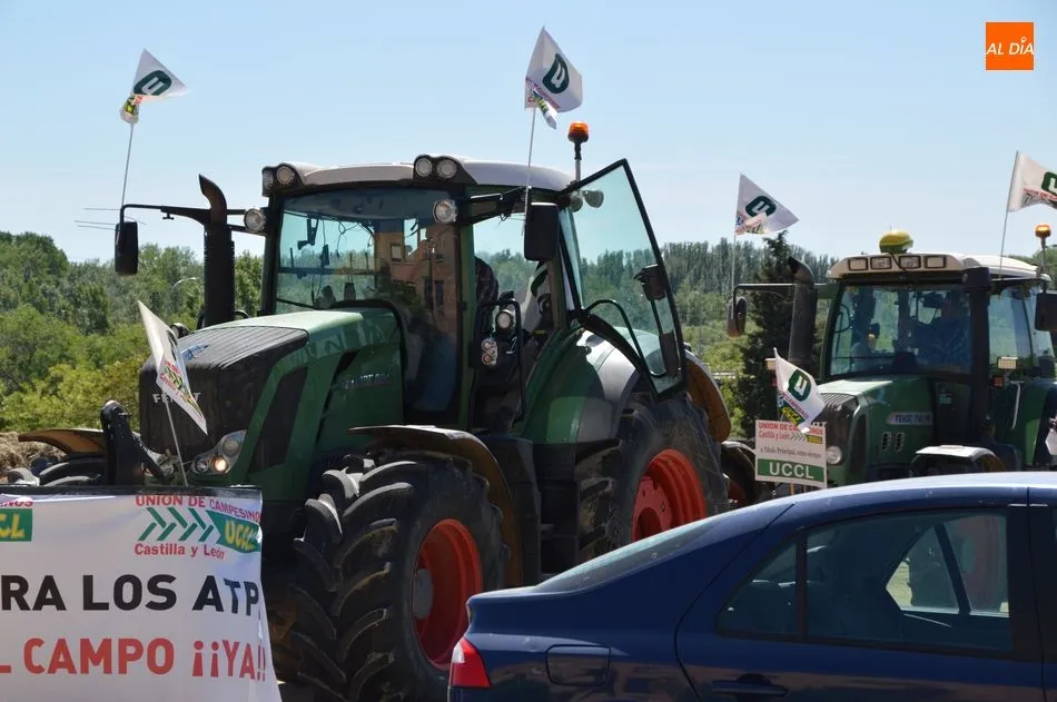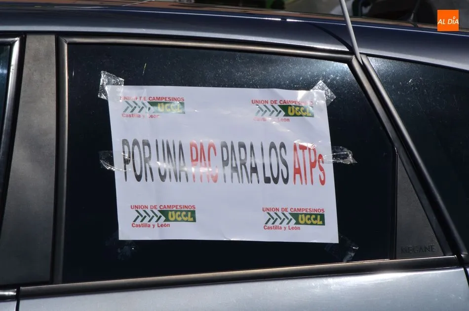 La Unión de Campesinos de Salamanca organizaba esta manifestación con coches y tractores, que partía del aparcamiento de Las Bernardas con el lema ?Por una PAC para los ATP?s y Democracia en el campo YA?.