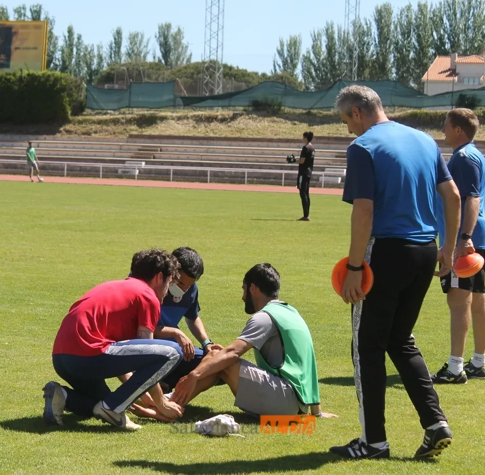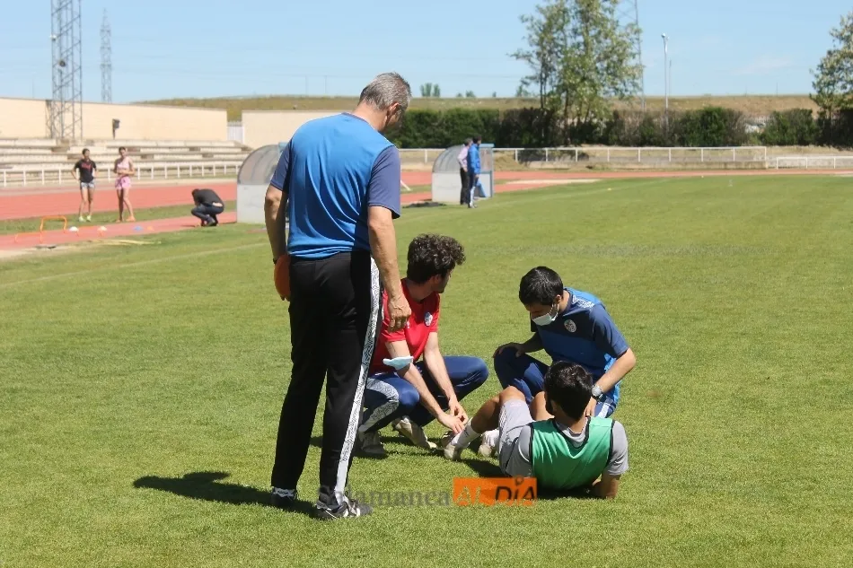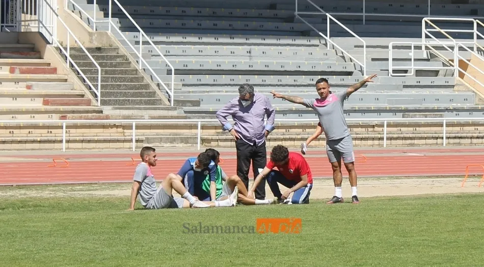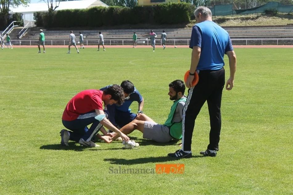 Alfonso Candelas abandonó el entrenamiento del Salamanca UDS por molestias en el tobillo izquierdo, ya que el lateral zurdo realizó un mal apoyo en una sesión en la que Sergio Molina y Juancho López, que volvió después de no salir el miércoles, también terminaron antes por precaución con la idea de que no se resintieran de sus problemas físicos.