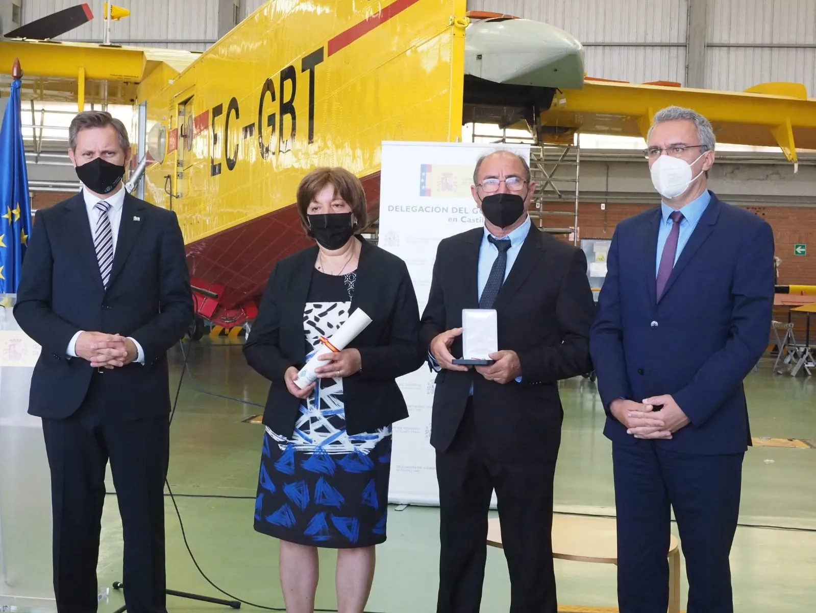 El acto estuvo presidido por los delegados del Gobierno en Castilla y León y Galicia, Javier Izquierdo y José Miñones, respectivamente. Además, junto a los familiares asistían la subdelegada del Gobierno en Salamanca, Encarnación Pérez; el jefe de la Base Aérea de Matacán y del Grupo de Escuelas de Matacán, el coronel Carlos María Bernardo; el director del aeropuerto de Salamanca, Ismael García, así como representantes de la empresa Babcock International Group, para la que trabajaba el piloto fallecido y familiares.