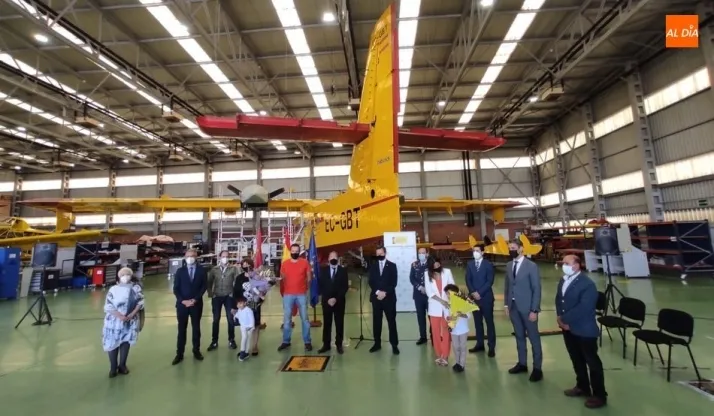 La base de Matacán, en Salamanca, acogía este viernes, un homenaje a Maximiliano Plaza Bretón, piloto salmantino, natural de Babilafuente, fallecido como consecuencia de un accidente sufrido mientras participaba en las tareas de extinción del incendio forestal de Lobios (Ourense), el 8 de agosto de 2020.Emotivo homenaje a Maximiliano Plaza Bretón, piloto fallecido en la extinción del incendio de... | Imagen 1