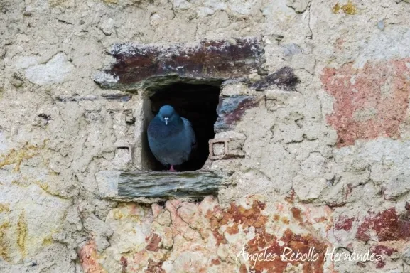 ?En esta conjunción de al menos tres reinos (la pared -obra humana- la paloma y la masa mineral), parece estar plasmado el mundo...? (José Luis Puerto) / Foto de Ángeles Rebollo