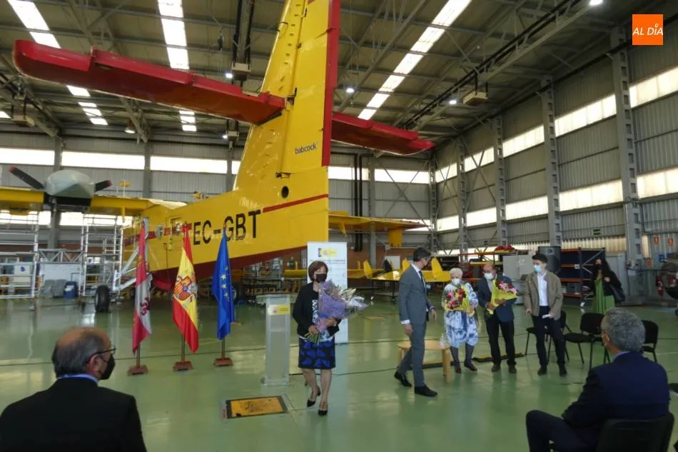 Entre los asistentes al acto se encontraba visiblemente emocionado Lorenzo Joaquín Bautista, alcalde de Babilafuente, que junto a la subdelegada del Gobierno y el representante de la empresa hicieron entrega de tres ramos de flores a la familia antes del cierre con una foto de familia.
