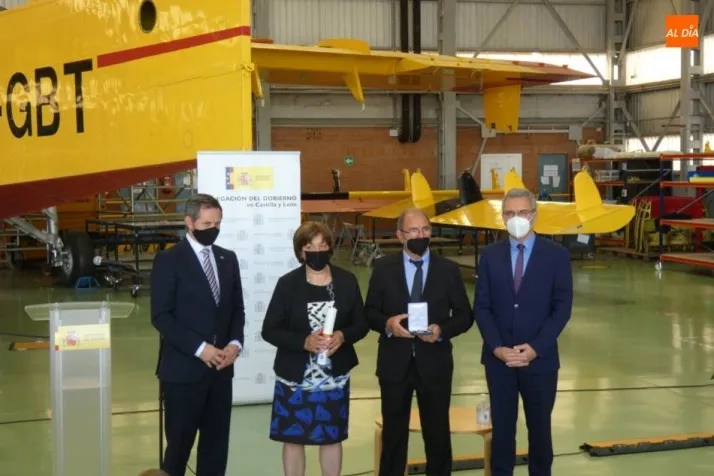 El piloto Maximiliano Plaza Bretón, Maxi, de Babilafuente recibió ayer la Medalla al Mérito de la Protección Civil en su categoría de oro con distintivo rojo a título póstumo en reconocimiento a su heroísmo y solidaridad en su máxima expresión. Sus padres, Marcelino y Ascensión recogieron este símbolo con el que el Ministro de Interior, Fernando Grande Marlasca, tuvo a bien reconocer el ?compromiso y la solidaridad demostradas tanto por Maxi, como por su compañero de vuelo Jorge Manuel Santana?.