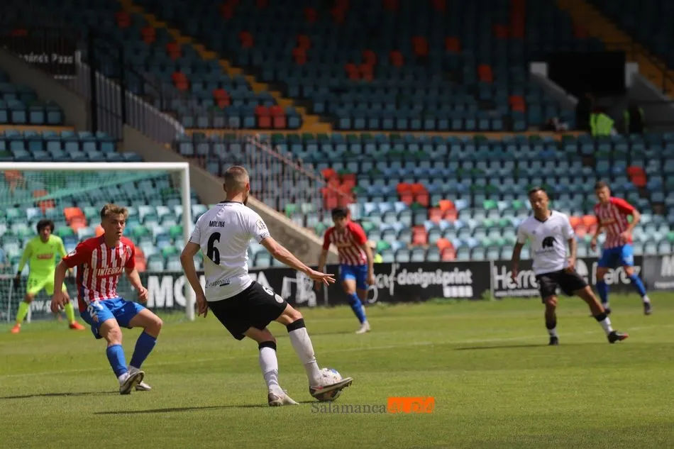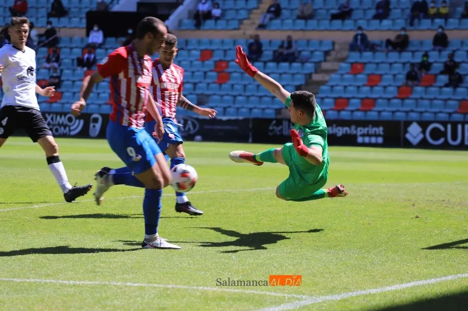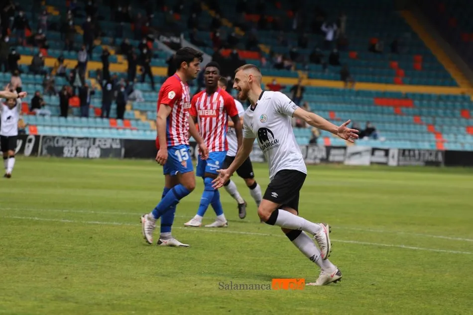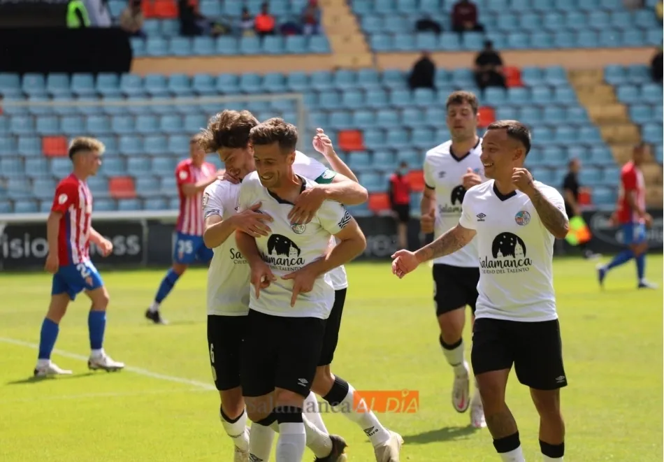Misión cumplida. El Salamanca UDS jugará la temporada que viene en Segunda RFEF al golear al filial del Sporting de Gijón (4-1). El conjunto charro cumplió de manera matemática con el objetivo de la segunda fase al alcanzar la salvación después de un año muy duro con la pérdida de una categoría. Fer Llorente, desde el punto de penalti, Uxío da Pena, que provocó la pena máxima que transformó el medio, Alfonso Candelas y Sergio Molina anotaron los tantos de una soleada mañana. Solo Koné pudo maquillar el resultado en la recta final.