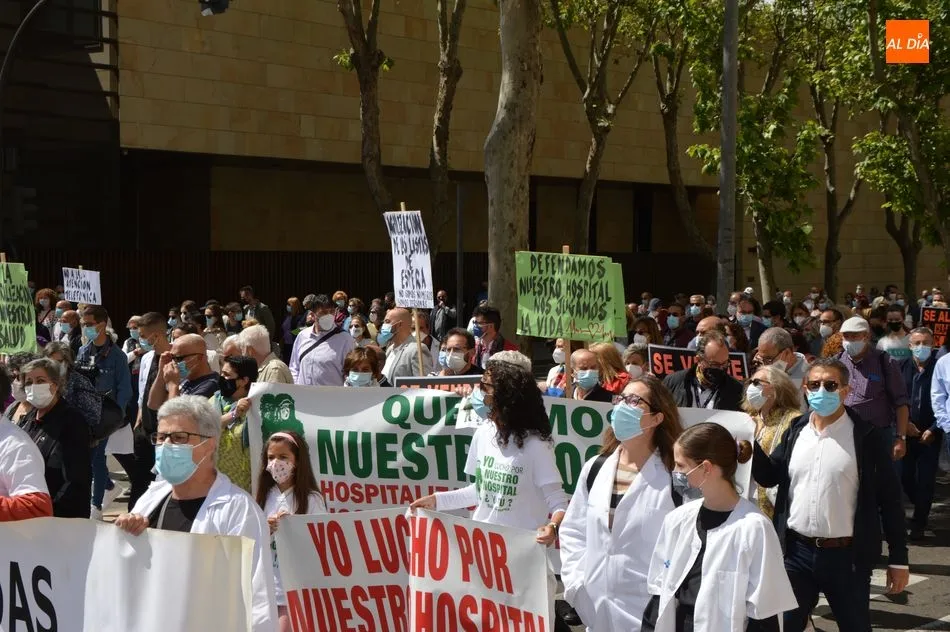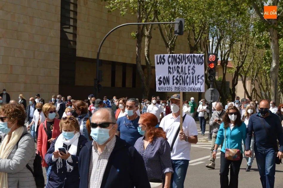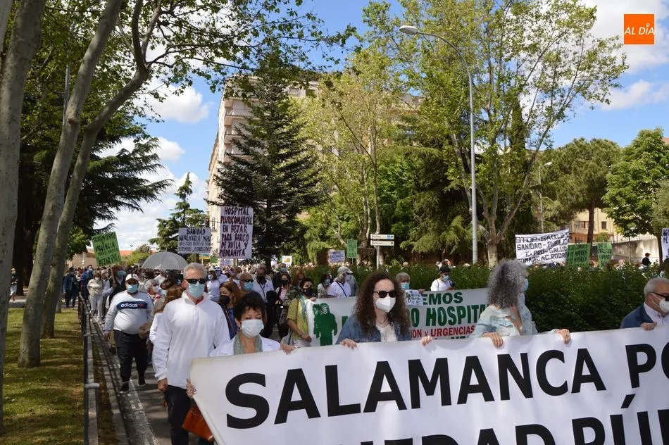 Aproximadamente unas 1.500 personas han participado en la Marea Blanca que ha recorrido esta mañana las calles de Salamanca reclamando mejoras en la Sanidad Pública y para protestar por el desmantelamiento que está sufriendo la Sanidad Rural en favor de la centralización de los servicios en la capital provincial.