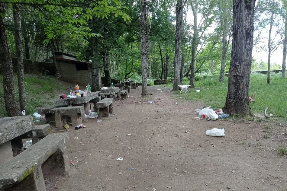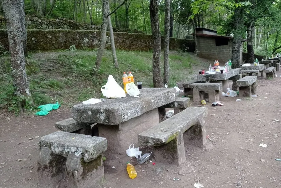 El merendero de La Fuente del Lobo aparece un domingo más lleno de basuras después de una noche de botellón, pese a que esta práctica está prohibida. Las personas que se trasladan hasta esa zona en las noches de los sábados llegan con bolsas llenas de botellas, que una vez vacías no se molestan en tirar a los contendores distribuidos por ese paraje natural.