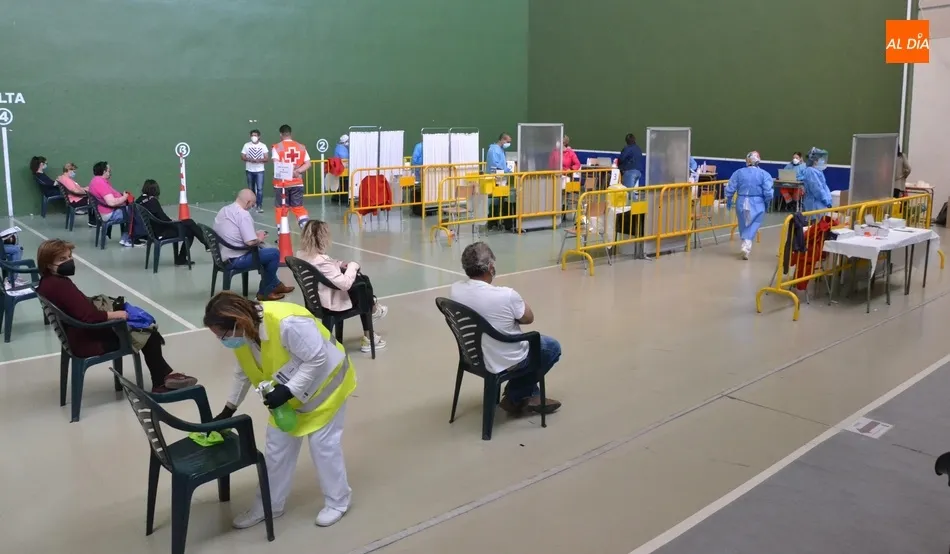 En esta ocasión, la jornada de vacunación se está desarrollando en función de los trimestres de nacimiento, aunque durante la mañana la afluencia fue irregular: a primera hora sí hubo más ajetreo, pero en el tramo central de la mañana no hubo que hacer la más mínima cola, ni en el exterior del Pabellón ni en el interior, llegando alguna persona directamente al frontón para vacunarse. Eso permitió que los profesionales sanitarios de algunas de las 6 líneas de vacunación habilitadas pudieran tomarse algún descanso a lo largo de la mañana.