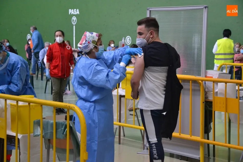 Después de que la semana pasada no hubiera ninguna sesión (la última había sido el sábado 15), el Pabellón Eladio Jiménez de Ciudad Rodrigo está acogiendo desde primera hora de la mañana del martes una nueva sesión de vacunación masiva contra el coronavirus, en la que en esta ocasión son protagonistas las personas nacidas entre el 1 de enero de 1962 y el 31 de diciembre de 1965 (junto a personas de otras edades que han sido citadas por algún motivo concreto, como por haber empezado a trabajar en residencias).
