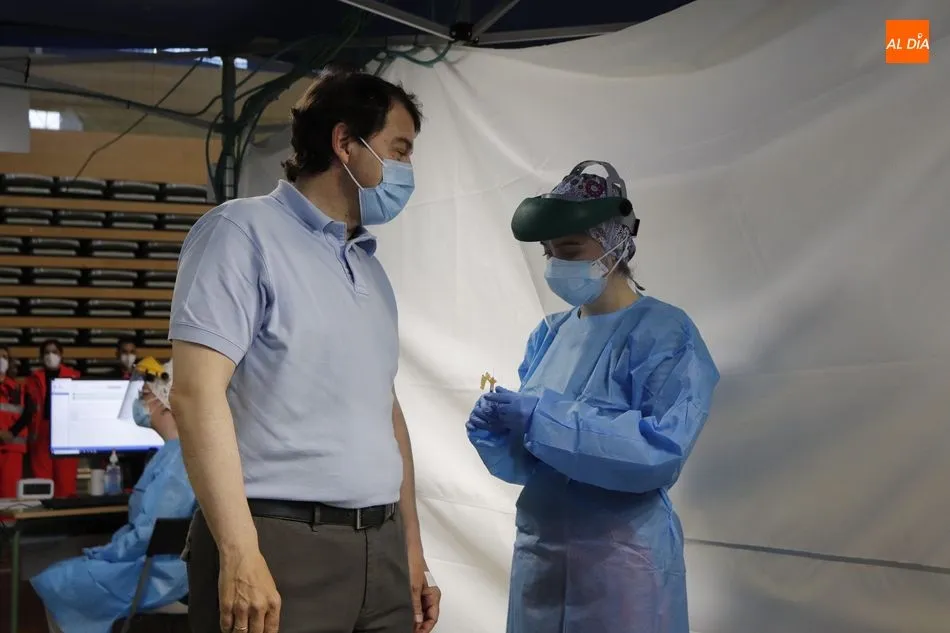 El presidente de la Junta de Castilla y León, Alfonso Fernández Mañueco, acudía esta mañana al Multiusos Sánchez Paraíso, con motivo del llamamiento para la vacunación frente a la COVID-19 correspondiente a su año de nacimiento, es decir, 1965. Su presencia ha generado cierta expectación, debido al despliegue de medios informativos, tanto locales como regionales.
