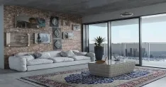 Es un estilo fácilmente reconocible justamente por la unión de elementos que típicamente contrastan. Se vuelve normal ver una pared decorada en piedra con estanterías de madera barnizada, o estancias que se separan unas de otras por el material de sus suelos. Por ejemplo, podrías tener un comedor con suelo QuickStep de madera y un salón con concreto.