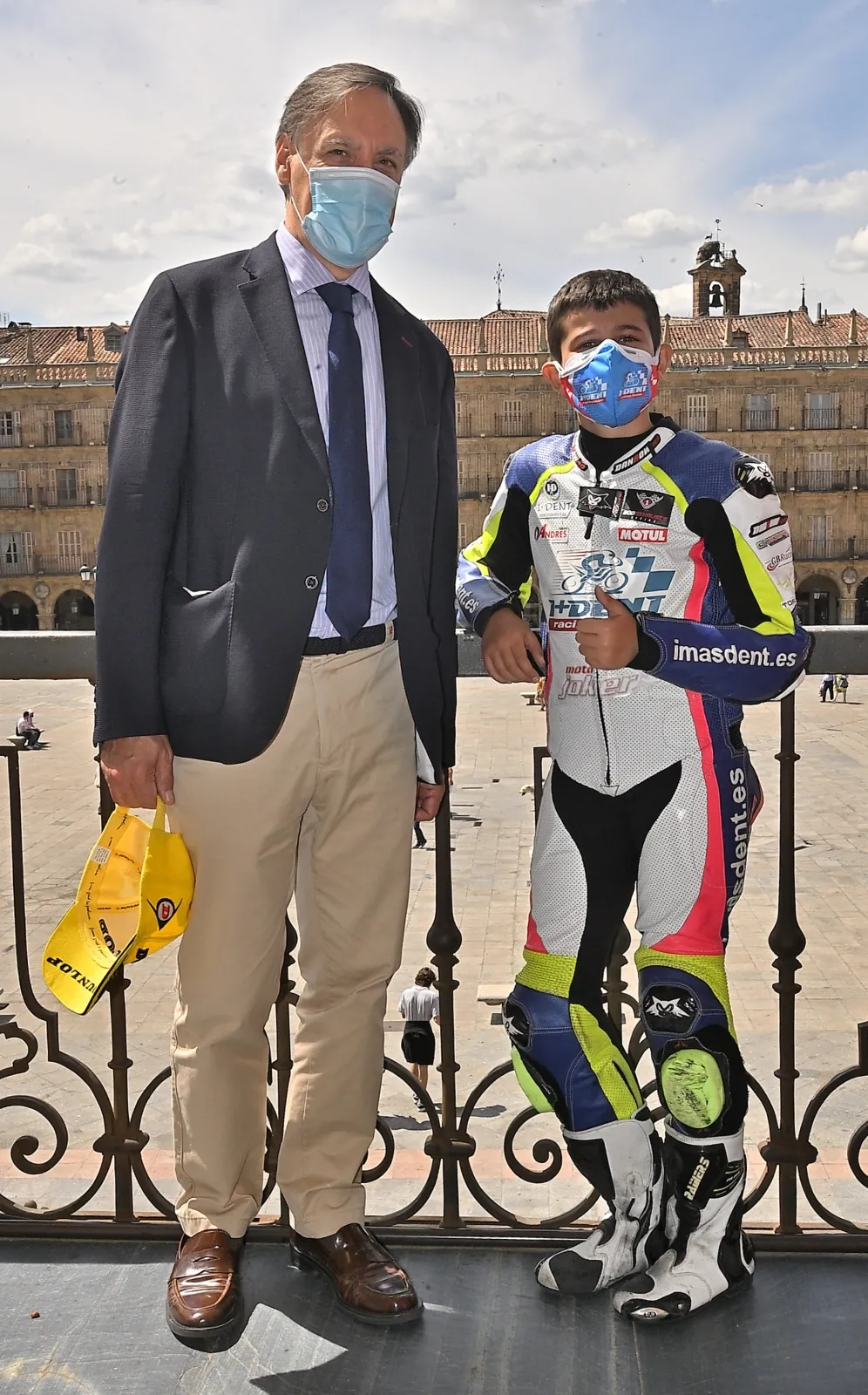 García Carbayo, quien ha señalado que sigue la meteórica carrera de Sergio, ha mostrado igualmente un poster autografiado por el piloto que colocará en su despacho, y que le servirá como una ?inspiración en el día a día?, ha dicho. Tal y como ha reseñado el regidor salmantino, Sergio Verdugo debutó en su primera competición oficial en 2019 y se convirtió en subcampeón de Castilla y León de mini GP 110. Ese mismo año, siendo el más pequeño de los competidores, entró en el Top Ten de la categoría mini GP100 de la Copa Dani Rivas.