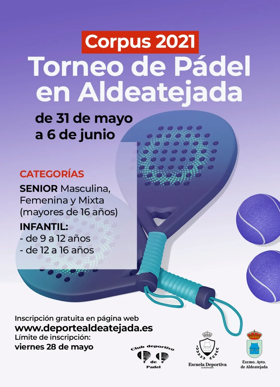 El pádel llegará a Aldeatejada con un apasionante torneo que tendrá lugar del 31 de mayo al 6 de junio. Además, habrá distintas categorías para que nad