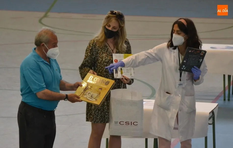 Enrique Madruga explicó que entre esas pruebas están una presentación de los niños para explicar por qué su enfermedad tiene que ser la curada, otra para conocer cómo se generan las reacciones químicas, y otra para comprobar qué le pasa a un medicamento cuando llega al cuerpo humano. Como recuerdo del paso de esta gymkana ¿Te atreves a descubrir un medicamento? por Ciudad Rodrigo, los promotores hicieron entrega al Ayuntamiento de unos libros de divulgación científica que quedarán depositados en la Biblioteca de la Casa de la Cultura.