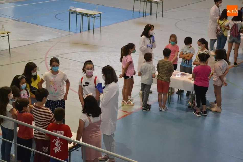 El Pabellón Eladio Jiménez de Ciudad Rodrigo dio en la mañana del sábado un nuevo paso en su curiosa actual etapa más vinculada al mundo médico y científico que al deportivo. Después de haber acogido en los últimos meses dos cribados masivos en busca de casos de coronavirus y de ser sede de las sesiones de vacunación contra la enfermedad que tienen lugar en la ciudad, en la matinal sabatina fue escenario de la gymkana científica denominada ¿Te atreves a descubrir un medicamento?.