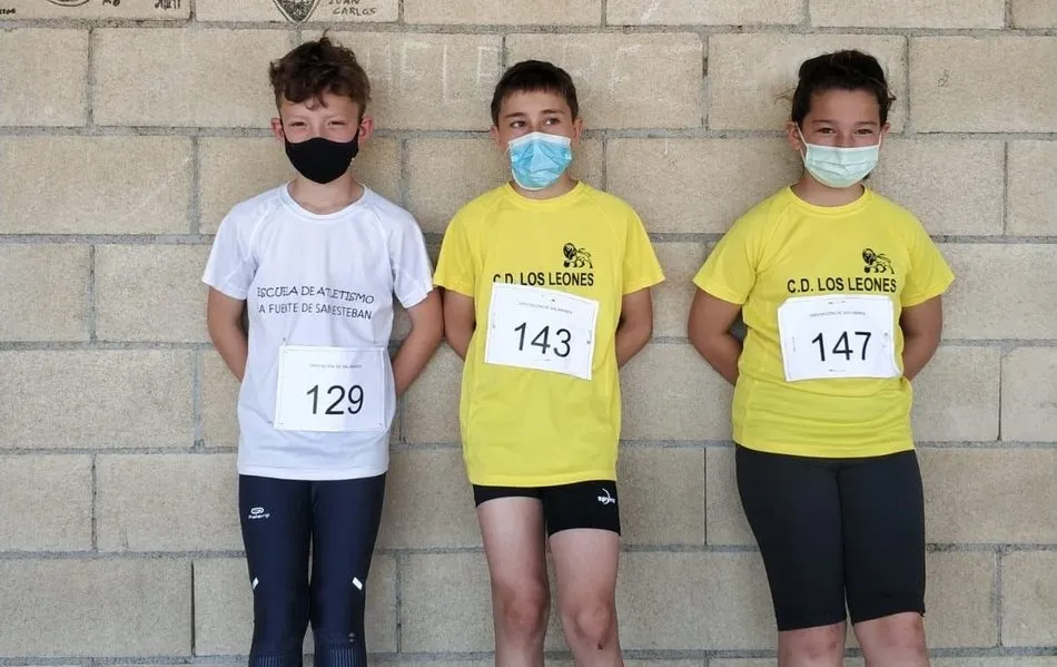 Buen papel el realizado por los tres representantes del CD Los Leones de Vitigudino en la jornada de Juegos Escolares celebrada este domingo en las pistas del Helmántico. Por un lado, Javier Moro, de categoría Infantil, quedaba 4º en salto de longitud y 9º en 80 metros lisos. Por su parte, Mario Vicente, de categoría Alevín, lograba 5º puesto en 1.000 ml, mientras que en 60 ml y en salto de longitud conseguía ser 9ª. Y Esther Pérez, también en Alevín, conseguía ser 1ª en peso y 24ª en salto de longitud.