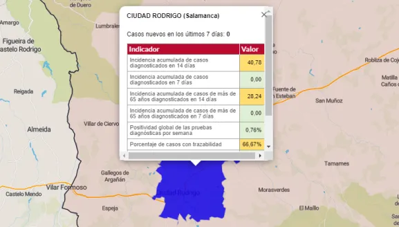 En lo que respecta a los datos desglosados por municipios, las variaciones también se concentran obviamente en las localidades que integran la Zona Básica de Ciudad Rodrigo. Por un lado, supera la semana de antigüedad el último positivo detectado en Ciudad Rodrigo, que luce este ?0? en el dato de incidencia semanal por primera vez desde el 14 de abril, jornada en la que tampoco se contabilizaban positivos en los 7 días previos.