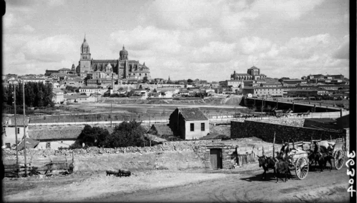 Es una de las magistrales fotografías de Antonio Passaporte que muestra la capital charra en la primera mitad del XX con un marcado carácter rural