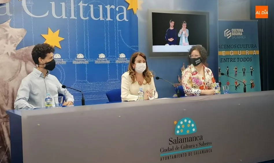 La concejala de Cultura del Ayuntamiento de Salamanca, Mª Victoria Bermejo, ha presentado esta mañana un nuevo estreno de una compañía salmantina. En esta ocasión de trata de la obra ?De(s) Madres?, una producción de la compañía La Bulé que se estrenará este fin de semana en la Sala B del Caem. Está programada una función el día 5 y otra el día 6 y para ambas las entradas están agotadas. Esta obra ha sido escrita por Esther Lázaro, dirigida por Zoe Martín e interpretada por Teseo Marlago y Marta Higelmo.