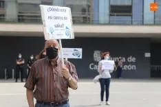 Un grupo de vecinos de la Prosperidad se concentraba esta mañana frente a la Delegación Territorial de la Junta de Castilla y León para reivindicar la ?construcción de nuestro necesario centro de salud?.