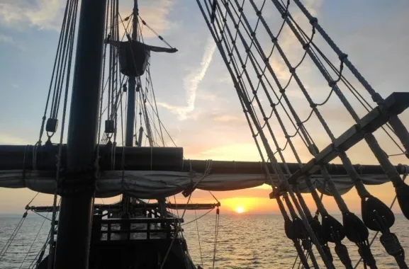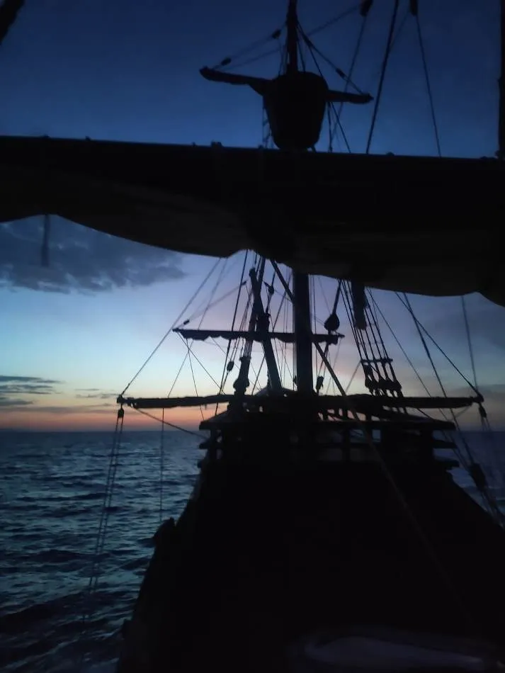 Durante el fin de semana, Sergio Olvidado -en su función de responsable de la promoción turística de la Nao- atendió en Castellón a cerca de trescientas personas diarias que querían conocer la réplica histórica de 120 metros cuadrados de superficie útil. Tras ello, en la jornada del lunes pusieron rumbo a Palamós (Girona), en un trayecto en el cual Sergio Olvidado incluso llegó a gobernar la nave. En esa localidad gerundense, participarán en el Festival Mariner de la Costa Brava que se está celebrando durante varios fines de semana. Las imágenes pertenecen al amanecer en las cercanías de Barcelona.