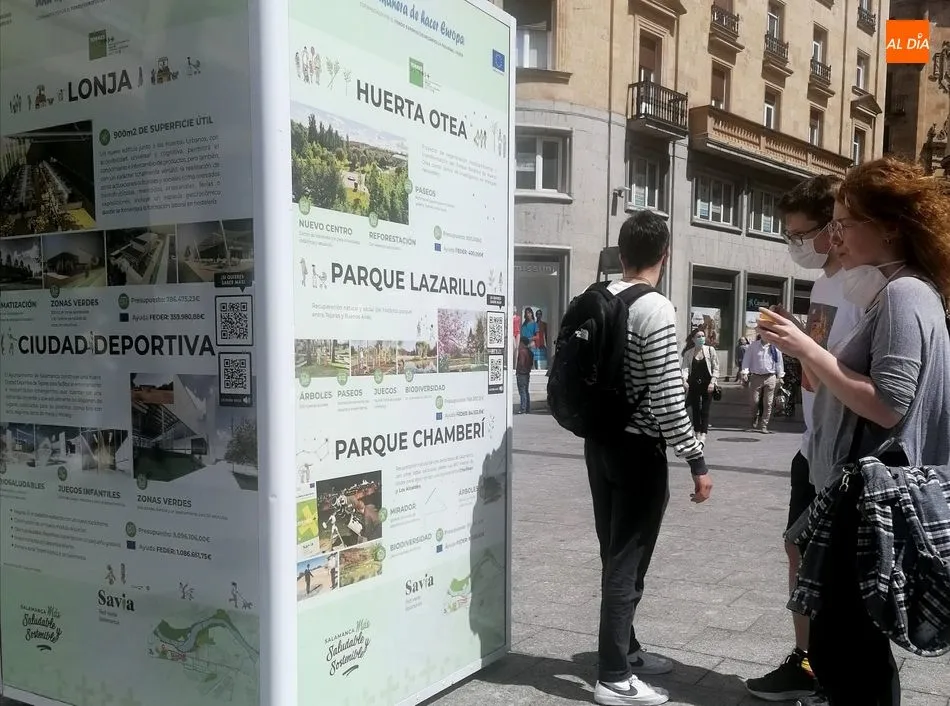 En la Plaza del Liceo se encuentra el cubo que muestra una Salamanca más saludable y sostenible, con imágenes y datos sobre el nuevo parque de 100.000 metros cuadrados con 617 huertos urbanos del que ya disfrutan los salmantinos; la mejora del Parque Botánico de Huerta Otea, el Parque de Chamberí y el Parque de Lazarillo de Tormes; y la recreación virtual de la futura Lonja Agroalimentaria, cuyas obras comenzarán en breve, y de la nueva Ciudad Deportiva de Tejares, en proceso de construcción.