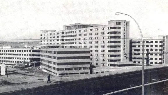 La fotografía adjunta nos muestra el aspecto que tenía el Hospital Clínico de Salamanca en 1974, aún en construcción. No fue hasta el año siguiente cuando comenzó su equipamiento y puesta en marcha.