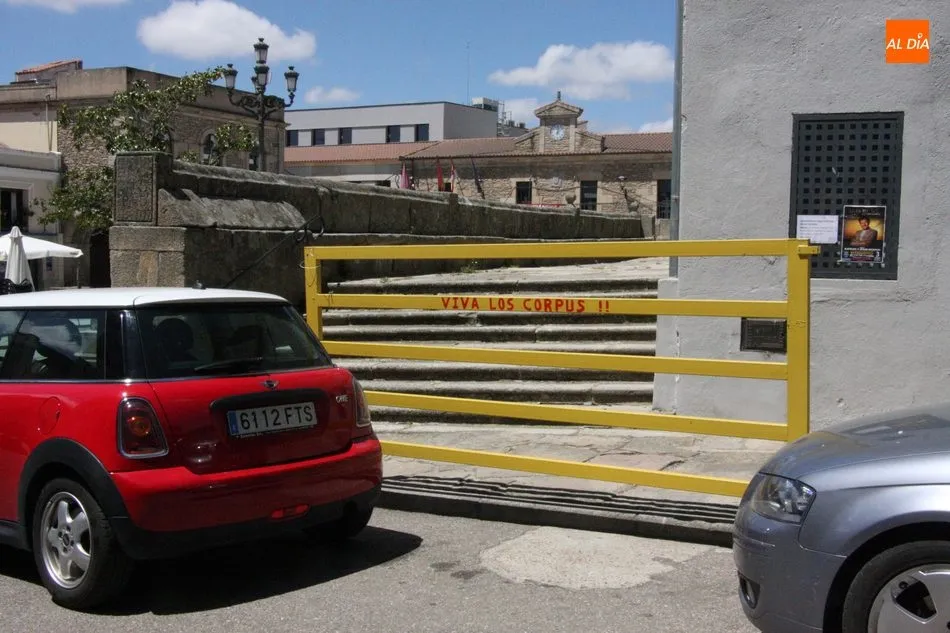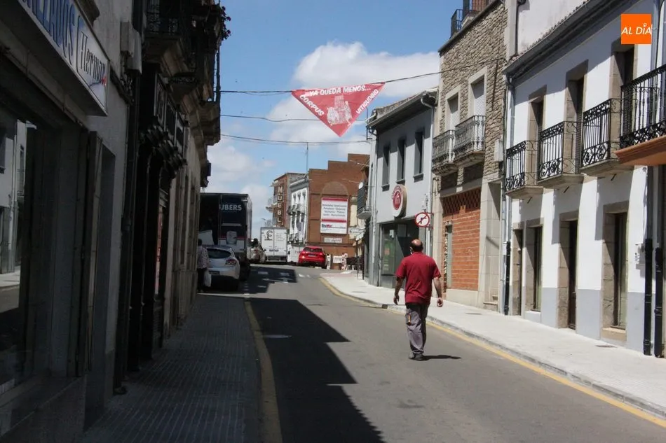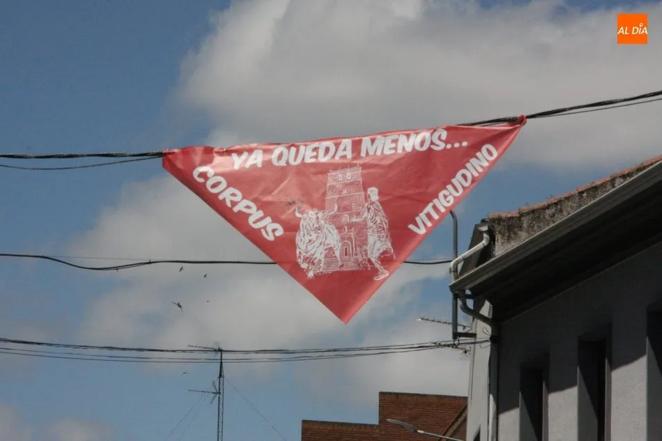Aunque dista mucho de su ambiente original, en las calles de Vitigudino se percibe desde ayer martes la llegada de las fiestas del Corpus. Con el objeto de recordar que estos días la villa vitigudinense vive sus fiestas más grandes, el Ayuntamiento ha colocado en varios puntos del centro urbano pañoletas con el lema ?Ya queda menos?, en clara alusión al deseo de vivir unas fiestas del Corpus en su plenitud. Una de estas pañoletas adorna el balcón del Ayuntamiento, y otras dos se encuentran repartidas en las calles Santa Ana y Pedro Velasco, junto al cruce de la Plaza de España.