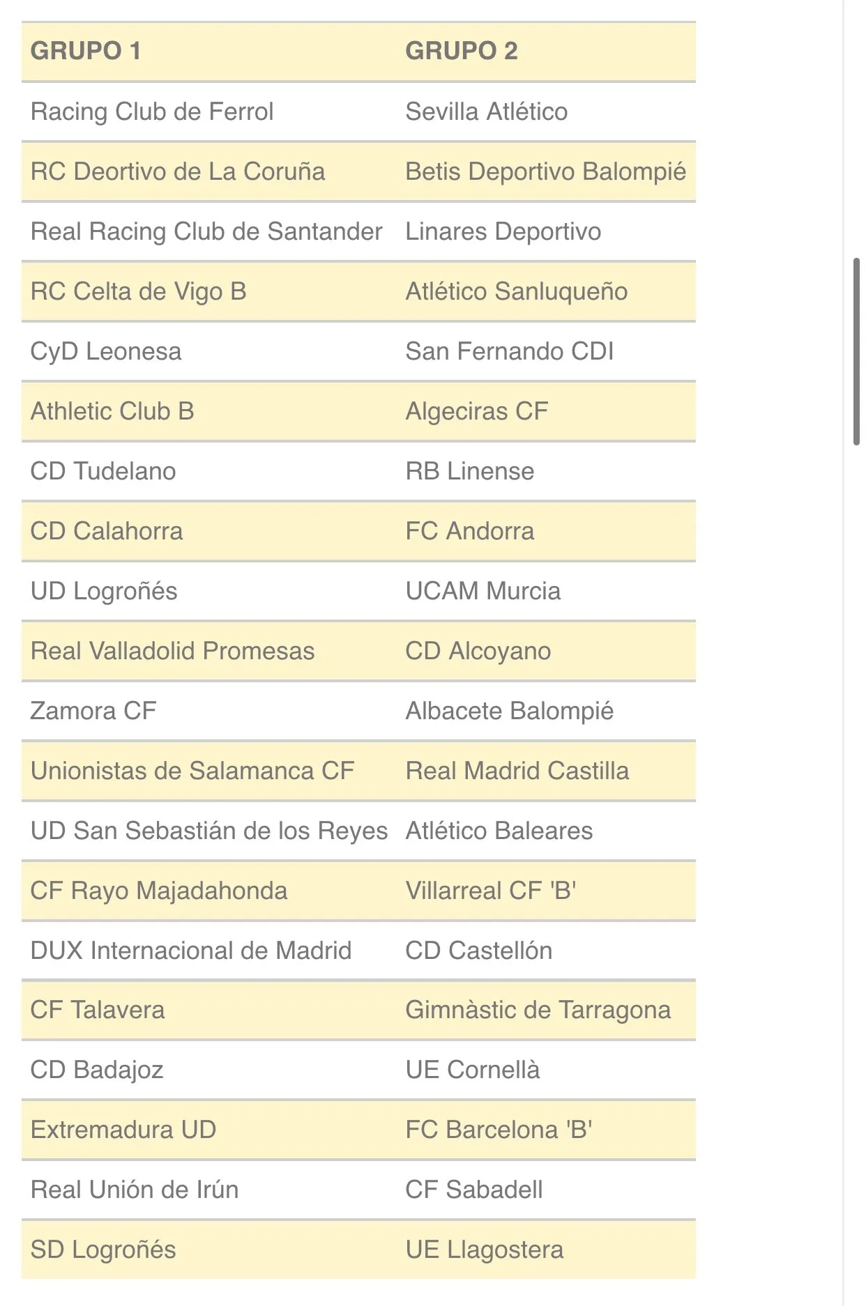 De este modo, los del Reina Sofía tendrán que medirse a: Racing de Ferrol, Racing de Santander, Deportivo de La Coruña, Celta de Vigo ?B?, Cultural Leonesa, Bilbao Athletic, Cultural Leonesa, Tudelano, Calahorra, UD Logroñés, Real Valladolid Promesas, Zamora, San Sebastián de los Reyes, Rayo Majadahonda, DUX Internacional de Madrid, Talavera, Badajoz, Extremadura, Real Unión de Irún y SD Logroñés.