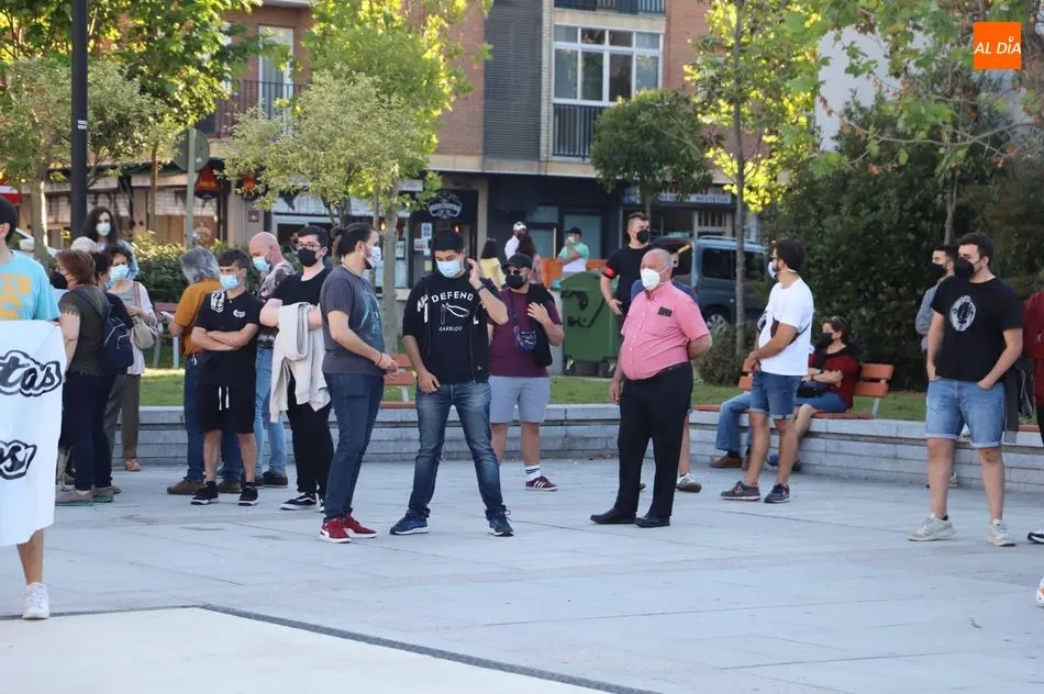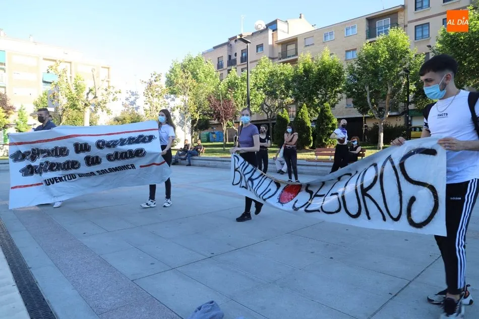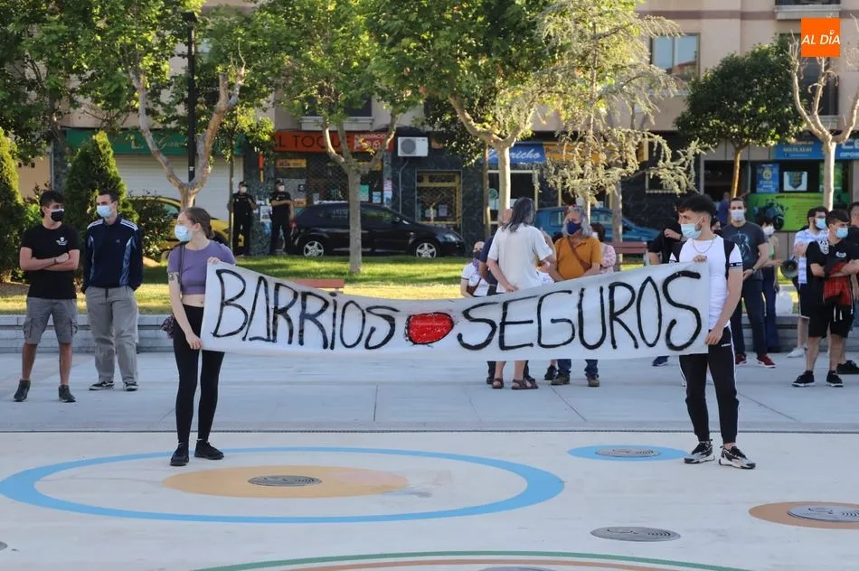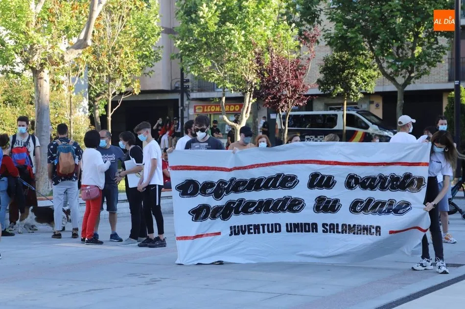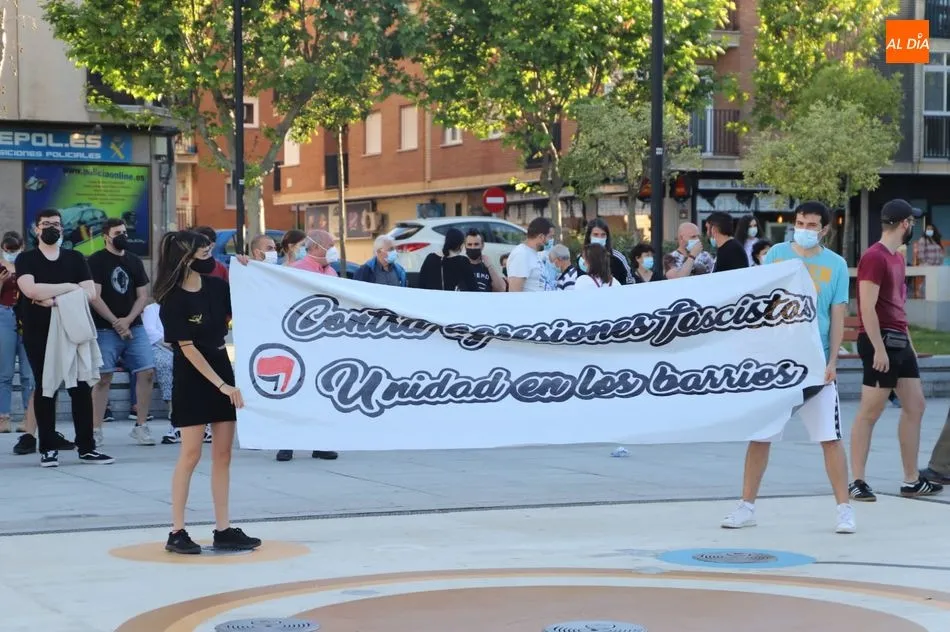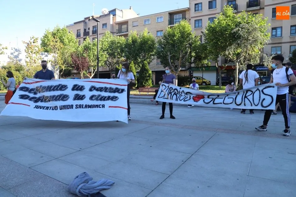 El Parque Garrido ha acogido este viernes una concentración por un barrio seguro y en contra de las agresiones y amenazas fascistas que, como han señalado los convocantes, Juventud Unidad de Salamanca, ?han sufrido algunos de los vecinos y trabajadores de locales del barrio?.
