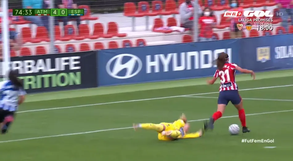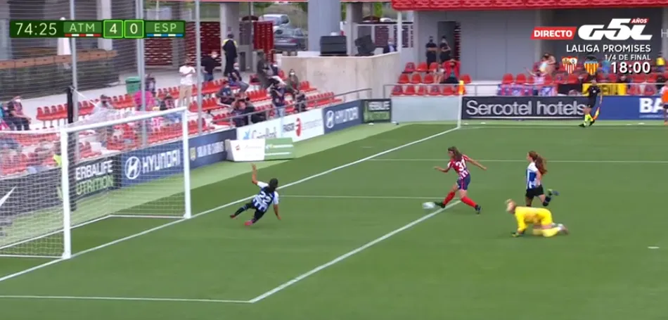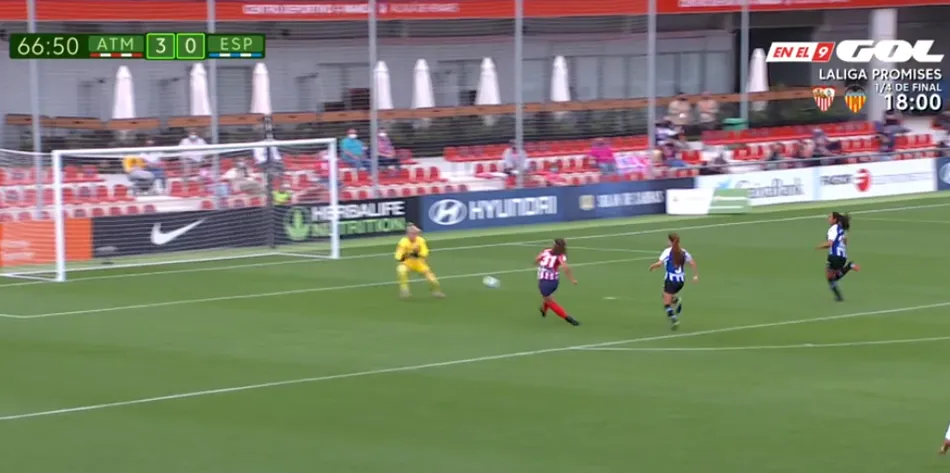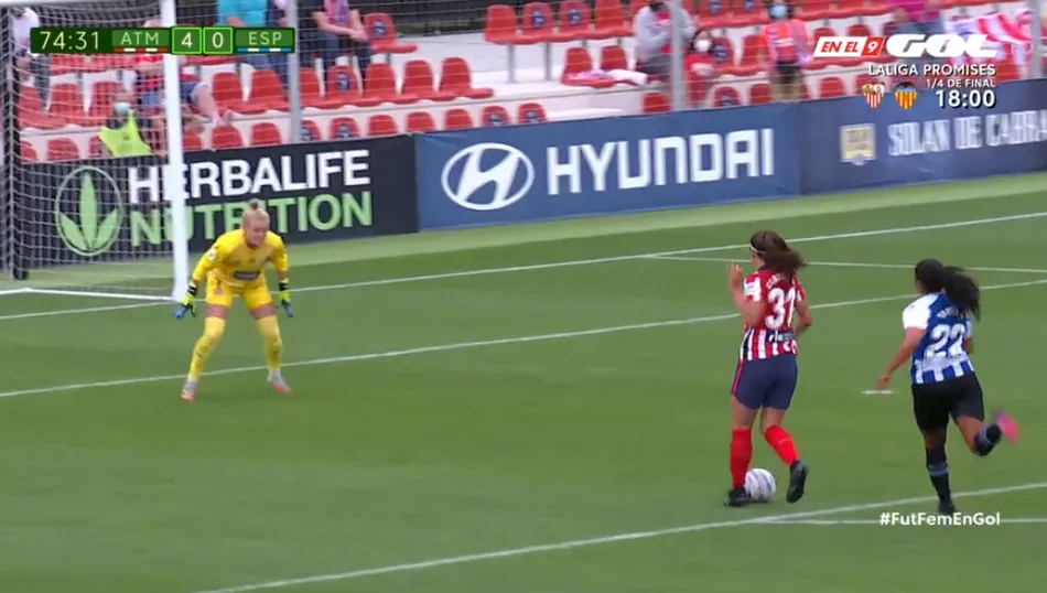 Cuando apenas llevaba cuatro minutos en el terreno de juego, tuvo su primera ocasión de gol, tras plantarse en un 1vs1 frente a la portera del Espanyol, realizando un fuerte disparo que fue al cuerpo de la guardameta, que lo blocó. Tras otra intentona en el 71?, con un balón por la izquierda con el cual se internó en el área, probando a disparar, pero golpeando el balón en una rival por el camino, el gran momento llegó en el 74?, cuando puso el 4-0 en el marcador.