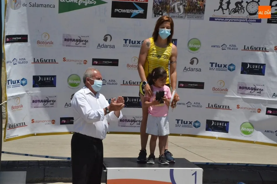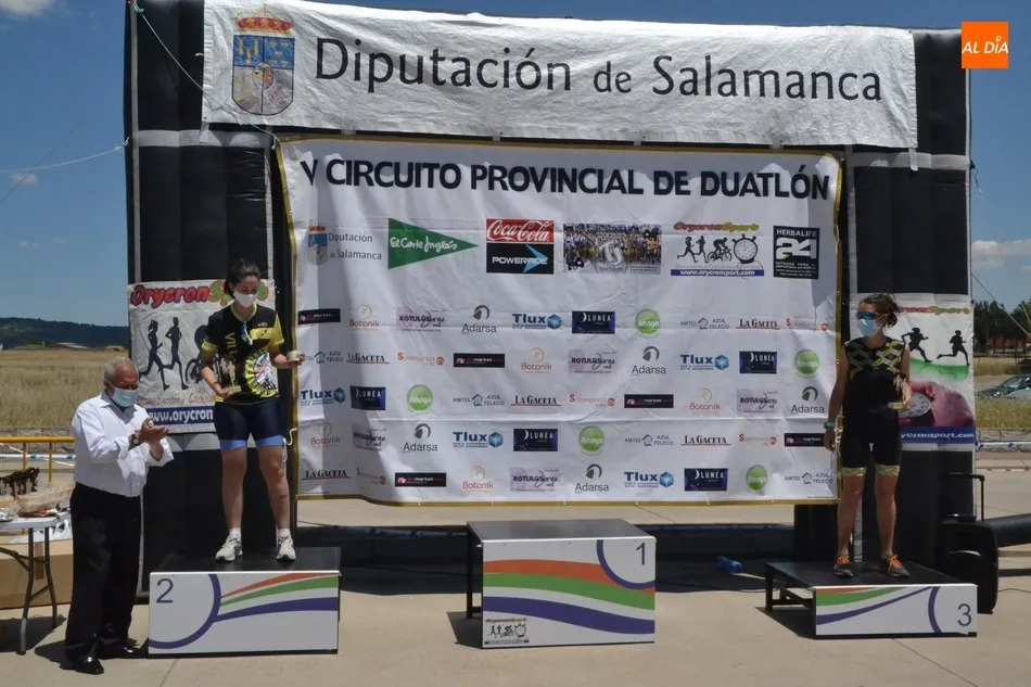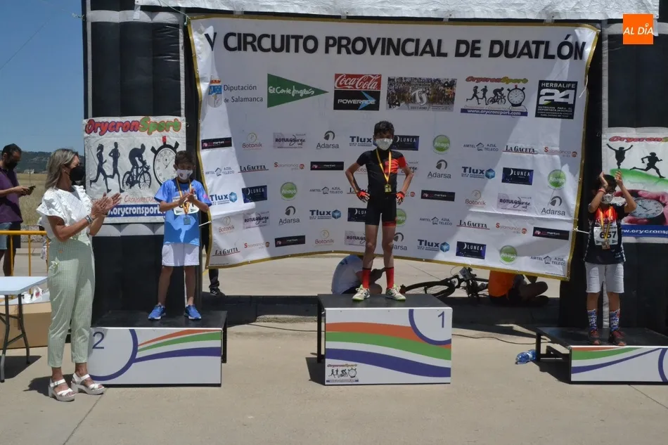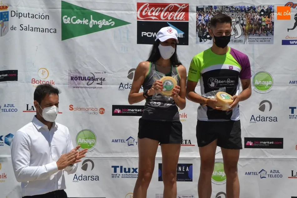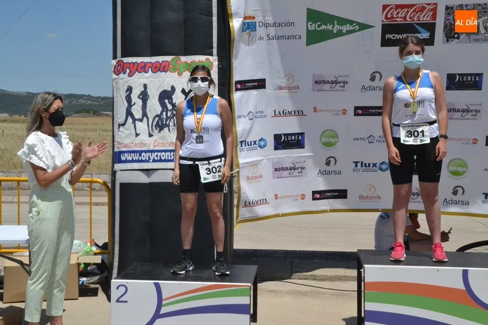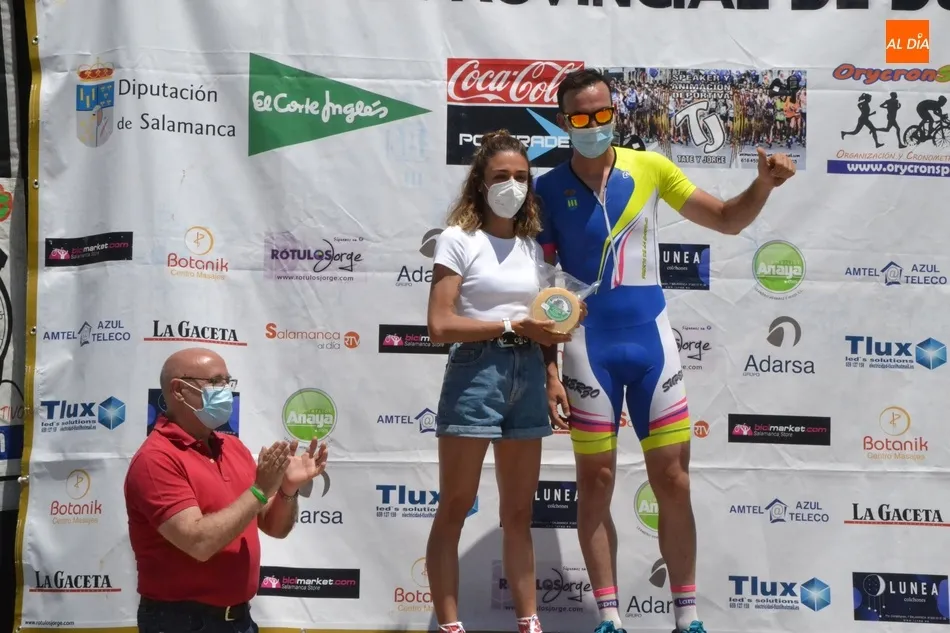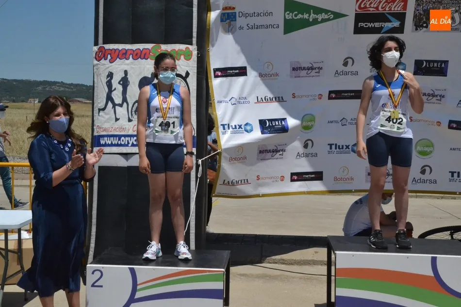 Alberto Domínguez García, del Saltoki Trikideak, y Beatriz Alonso Sánchez, del Alcor Orientación, han tenido el honor de convertirse en los primeros campeones absolutos en tierras mirobrigenses de competiciones de carreras en esta nueva era marcada por el coronavirus, al ser los primeros participantes de la modalidad individual del Duatlón Cross de Ciudad Rodrigo en cruzar la línea de meta instalada en la gran avenida situada entre el Centro de Salud y Especialidades y el Cementerio.