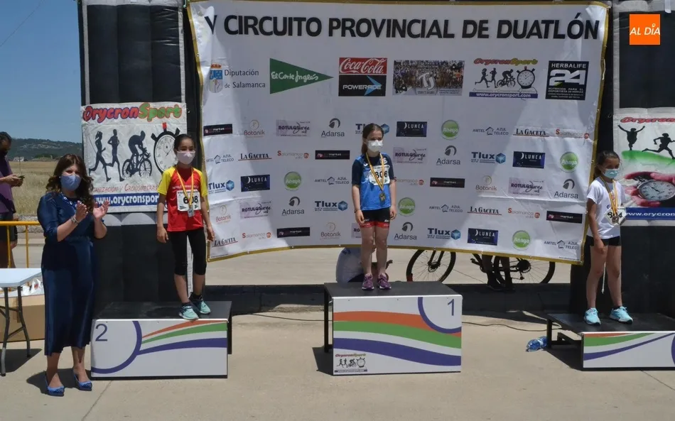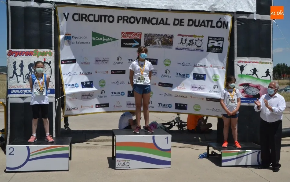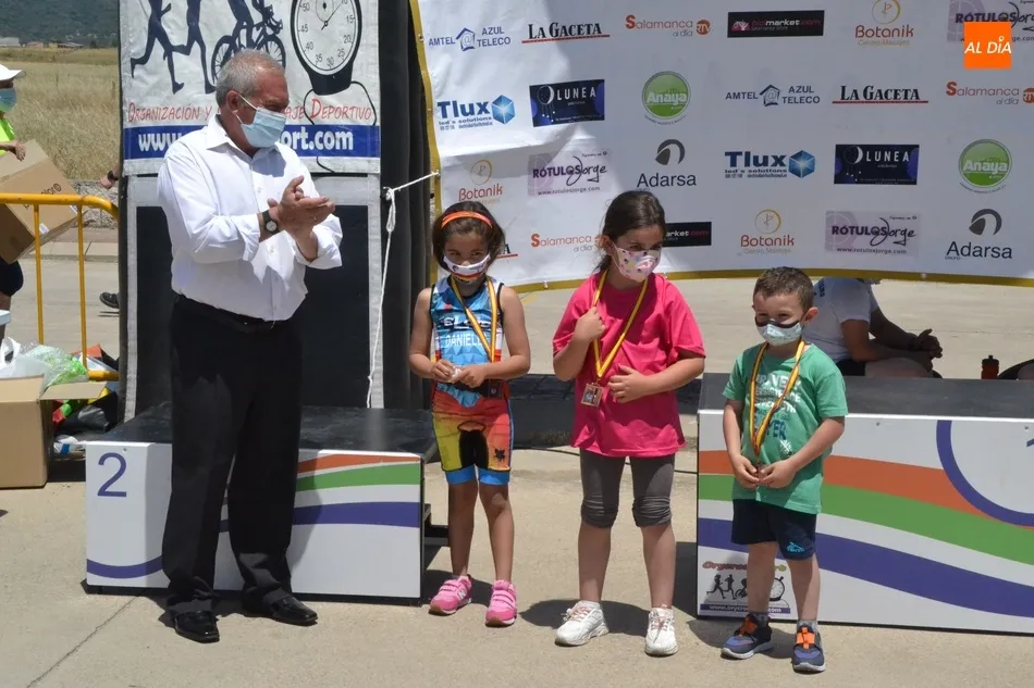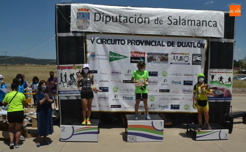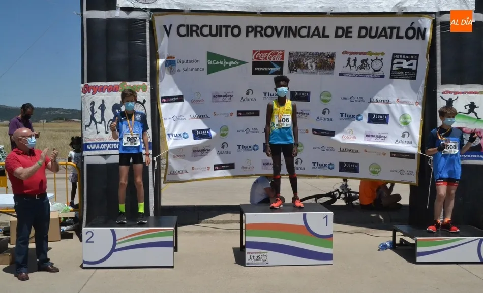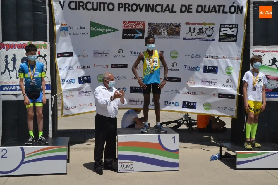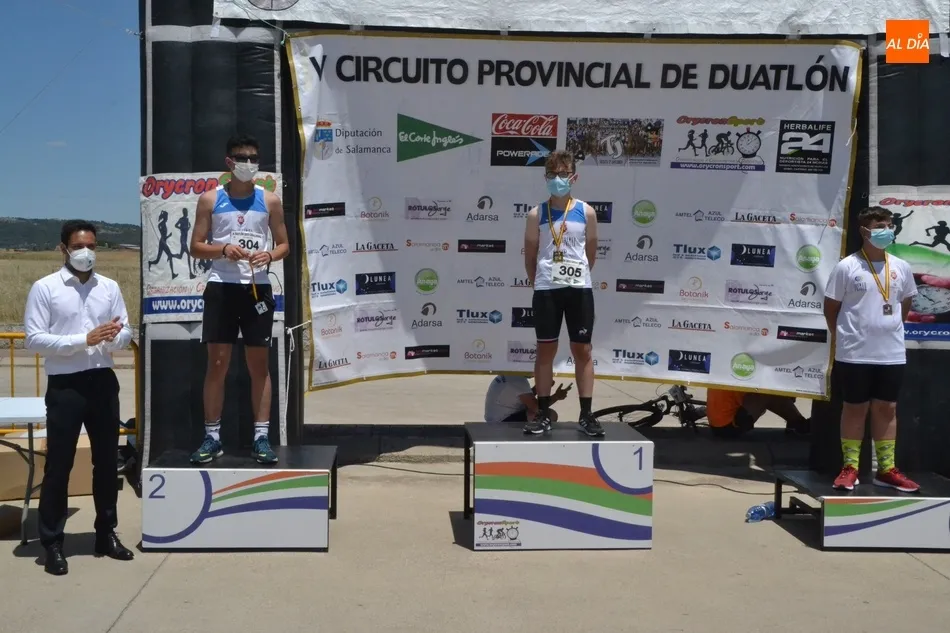 Alberto Domínguez García, del Saltoki Trikideak, y Beatriz Alonso Sánchez, del Alcor Orientación, han tenido el honor de convertirse en los primeros campeones absolutos en tierras mirobrigenses de competiciones de carreras en esta nueva era marcada por el coronavirus, al ser los primeros participantes de la modalidad individual del Duatlón Cross de Ciudad Rodrigo en cruzar la línea de meta instalada en la gran avenida situada entre el Centro de Salud y Especialidades y el Cementerio.