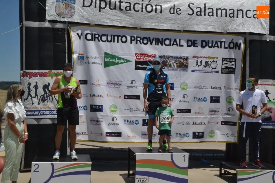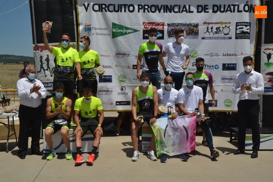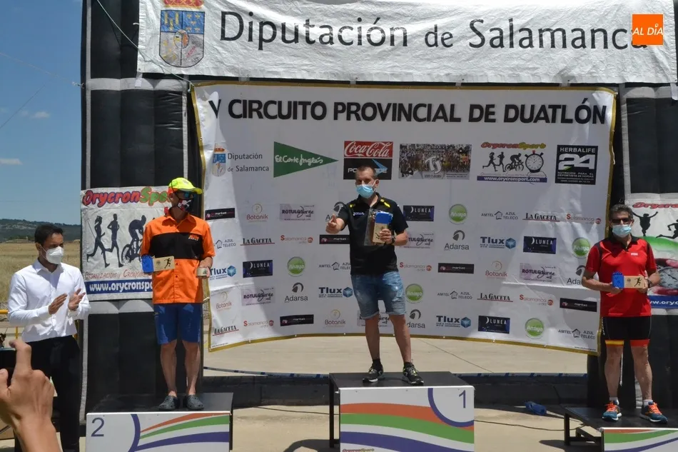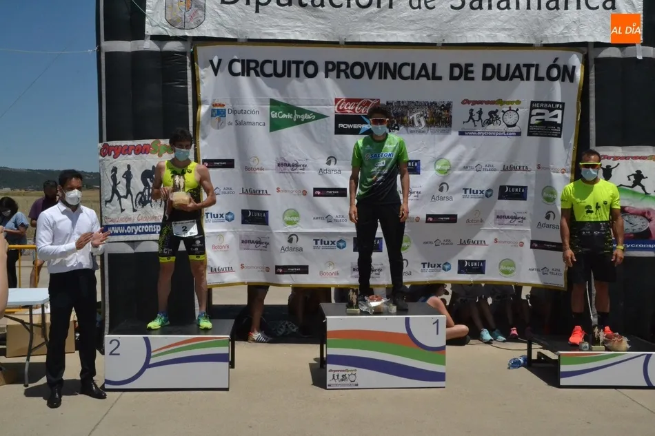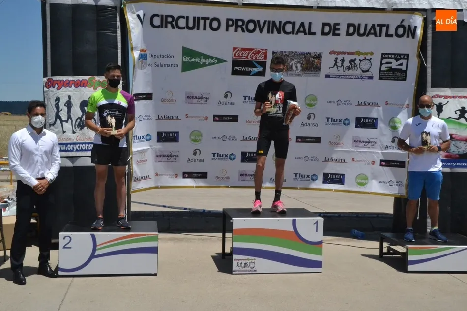 En lo que respecta a Alberto Domínguez García, vencedor de la categoría masculina, entró en meta con un tiempo de 1h.08?47?, apenas 11 segundos por delante del segundo clasificado individual, Antonio Cerezo López, del Salmántica Triatlón Club, y 26 por delante del tercero, Marc Rodríguez Boyero, también del Salmántica Triatlón Club.