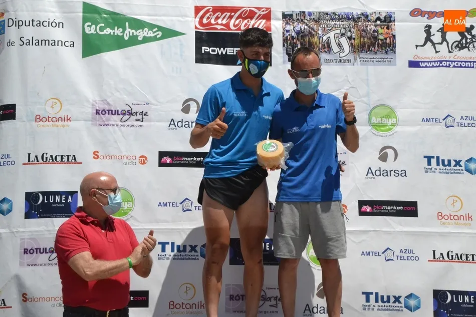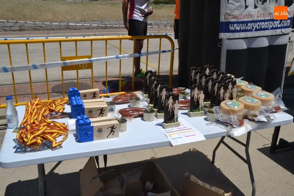 En la ceremonia de entrega de premios que culminó la mañana también se recompensó a los tres primeros clasificados en las categorías Senior, Veteranos A y Veteranos B, y por supuesto a los primeros clasificados en las pruebas para niños y adolescentes. Además, hubo un reconocimiento para los primeros locales en la categoría individual: Ángel Manuel Macarro y María Renilla. Los premios entregados (cogiéndolos los atletas de una bandeja para evitar contactos) fueron trofeos, medallas y productos en especie como farinatos, quesos o latas de paté.