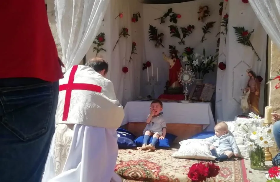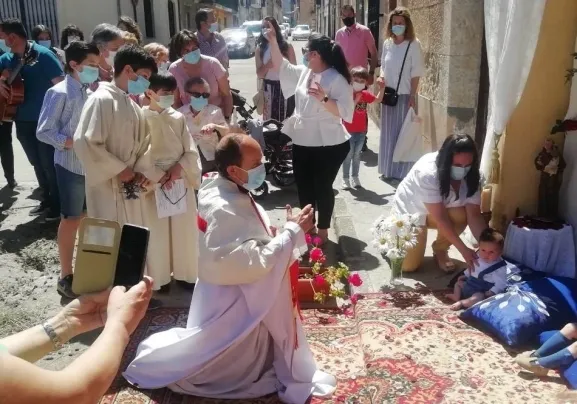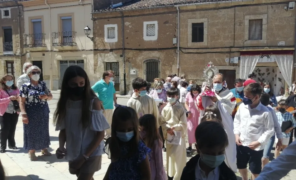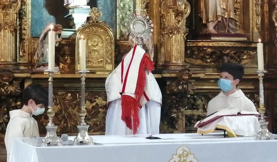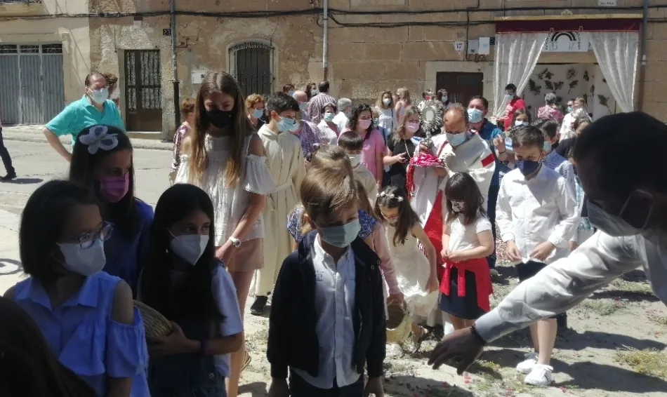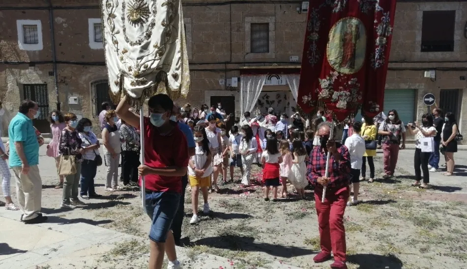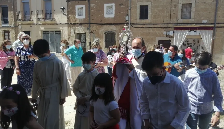 Como el Santísimo Sacramento no iba a procesionar por el centro histórico de Ciudad Rodrigo debido a la pandemia del coronavirus, la Parroquia de San Andrés celebró en la mañana del domingo la festividad del Corpus Christi, que tradicionalmente se conmemoraba en las parroquias mirobrigenses el fin de semana siguiente (en la denominada Octava de Corpus), quedando reservado éste para la celebración en el recinto amurallado.