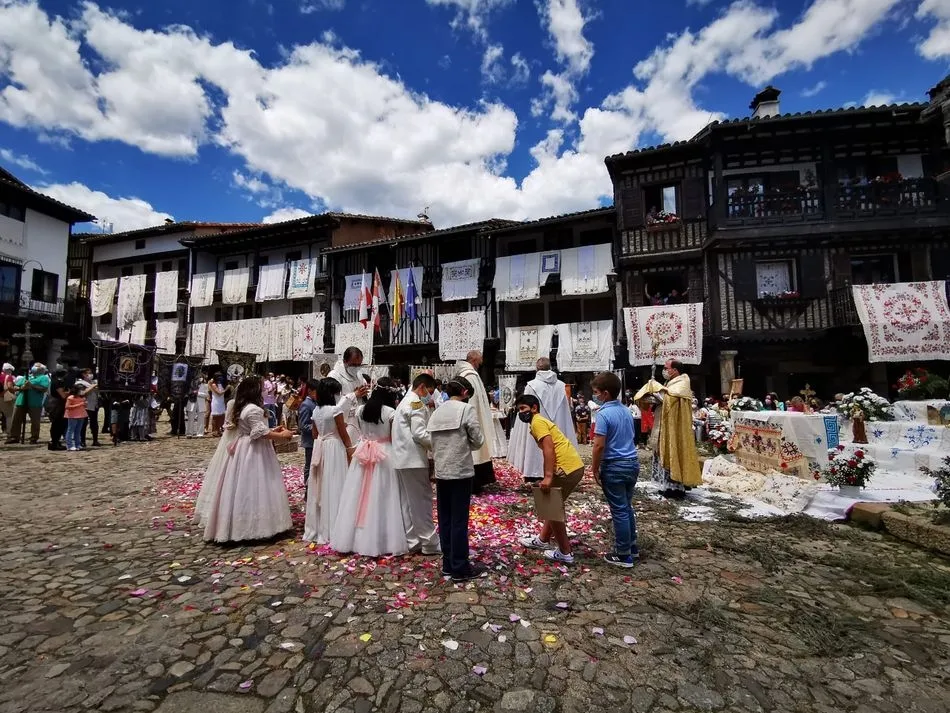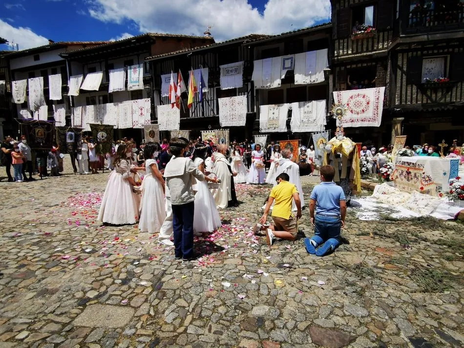 La Alberca no ha faltado este año a la tradición de una de sus celebraciones más coloridas con el Corpus. La parroquia de la localidad decidió celebrar finalmente una procesión limitada, debido a las circunstancias actuales. Tras la solemne eucaristía en la iglesia de la localidad, se partió en procesión con protagonismo de los niños de Primera Comunión de la localidad. A diferencia de otros años en l