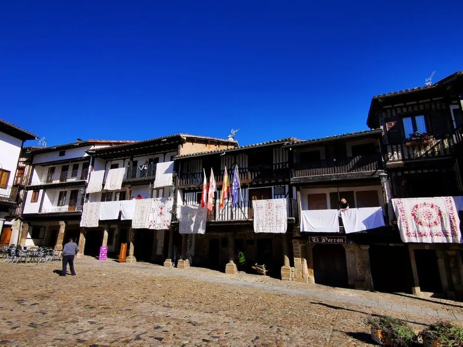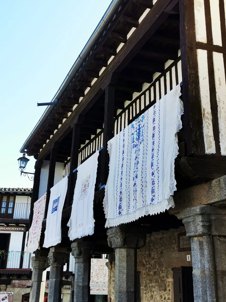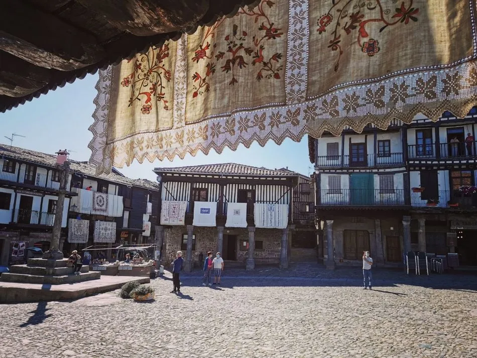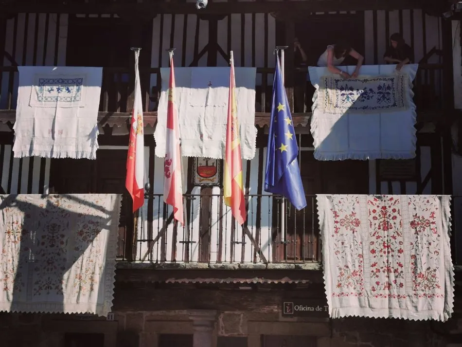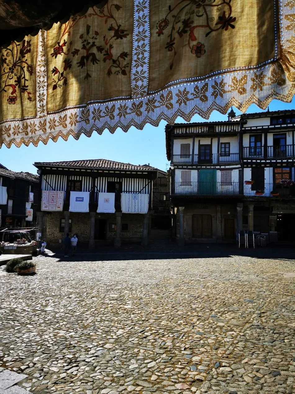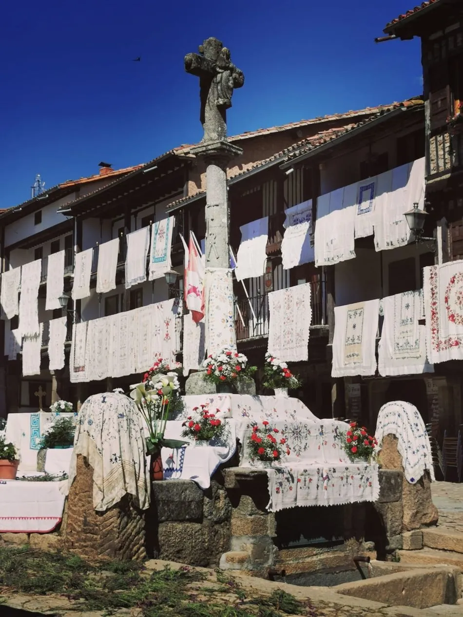 os que se recorren los cinco altares ubicados por todo el centro, en esta ocasión solo se trasladó la comitiva hasta la Plaza Mayor donde fue ubicado uno de los altares. Como manda la tradición, los vecinos adornaron sus ventanas y balcones con motivos serranos contribuyendo al espectacular aspecto festivo de la localidad pese a las limitaciones actuales por la pandemia de coronavirus.