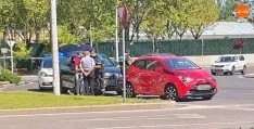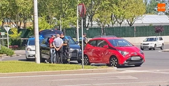 Un automóvil negro, marca Audi, y un Toyota rojo chocaban esta mañana en la glorieta de Castilla y León, que conecta el paseo de los Cipreses, el paseo Vicente del Bosque y la avenida Federico Anaya.