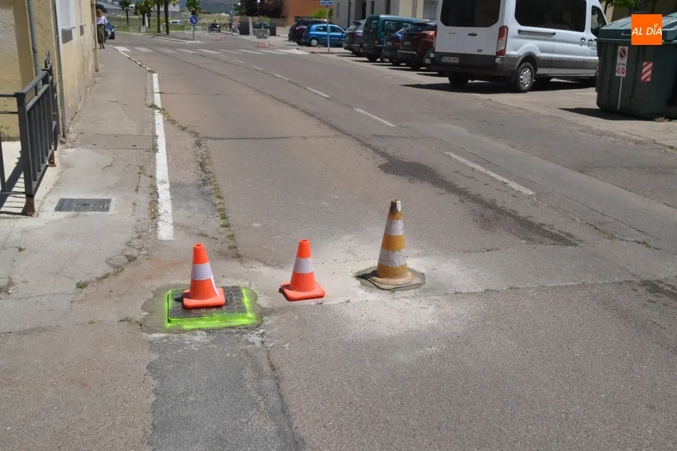 En este sentido, como se puede ver en las imágenes, operarios del Ayuntamiento de Ciudad Rodrigo han procedido a realzar las tapas de todos aquellos elementos subterráneos de la vía como alcantarillas o canalizaciones, para que no queden cubiertas en el momento del reasfaltado. Hasta que llegue ese momento, el contorno de esas tapas sobresalientes ha quedado marcado con un color verde fosforito, además de situarse encima de las mismas conos o vallas para evitar que tengan problemas con ellas especialmente los vehículos (y los peatones en algún caso puntual donde están bastante pegadas a la acera).