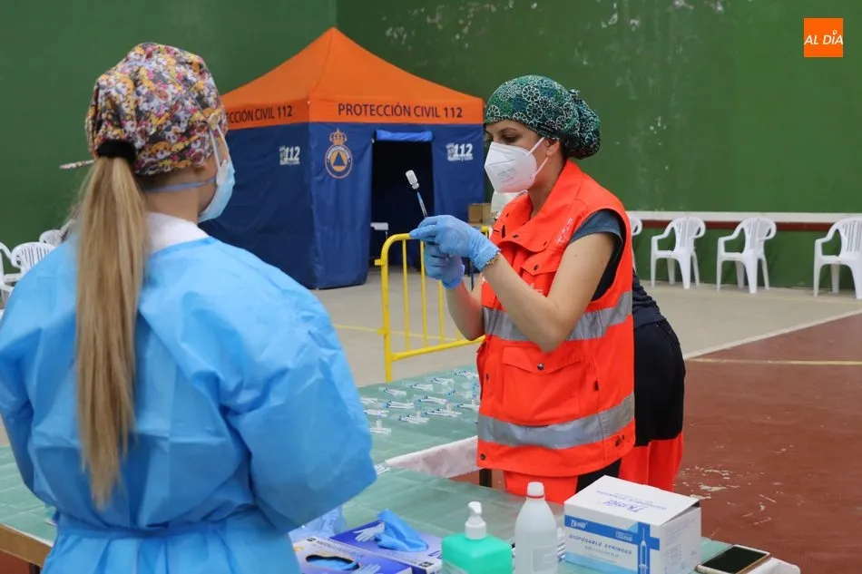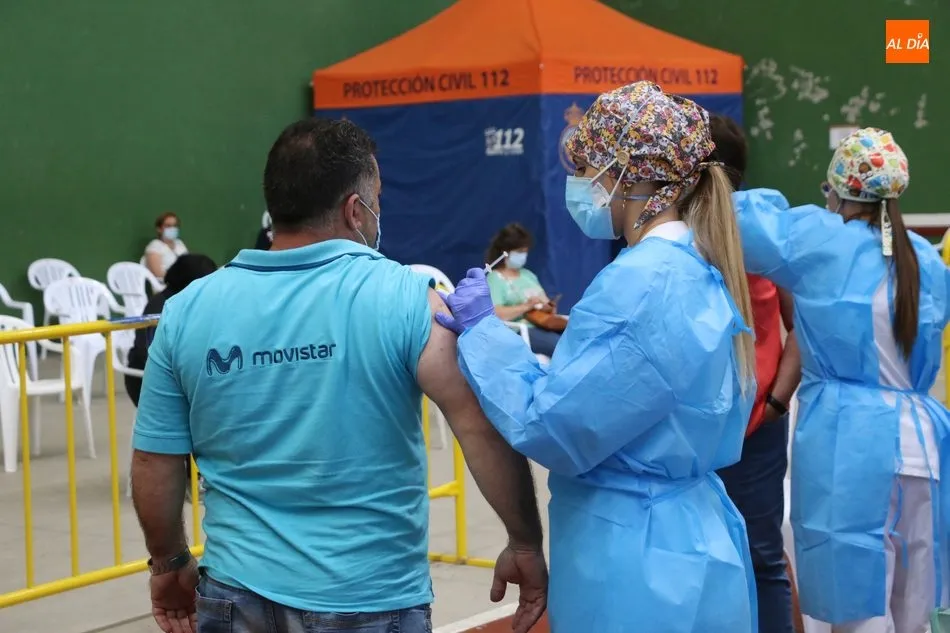 Más de 700 personas residentes en las zonas de salud de Aldeadávila, Lumbrales y Vitigudino recibieron este martes 8 de junio, en esta última localidad, la vacuna anticovid, en esta ocasión la elaborada por Janssen de una sola dosis, lo que implica que a partir del 22 de junio las personas vacunadas tengan un alto porcentaje de inmunidad frente a La COVID-19.