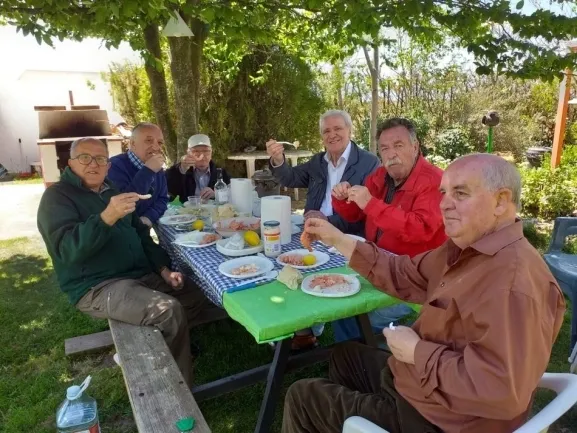 - Esta vez sí, amigo del alma, sí, y déjeme que le cuente un poquito sobre el evento mencionado. El día 11 de junio del 2021, si Dios quiere y el tiempo no lo impide y junto a cuatro amigos venidos desde El Cerro donde soy Hijo Adoptivo-) (Ver foto) y otros de la Peña ?Los Magníficos? (Ver foto), a la que pertenezco; celebraremos en la parcela de Villaflores un evento importante para mí, como será la presentación informal de dos libros de Recopilaciones de nuestras charlas en un tiempo y de un relato corto original. Seremos unos diez, estaremos al aire libre y todos estamos vacunados; gozaremos de algunos divertimentos de pueblo como los juegos de Bolos Clásicos Castellanos. Lógicamente no faltará el vermú con anchoas y otros acompañamientos y senda comida con buen hornazo salmantino. Ya les contaremos en qué quedó la ?cosa?.
